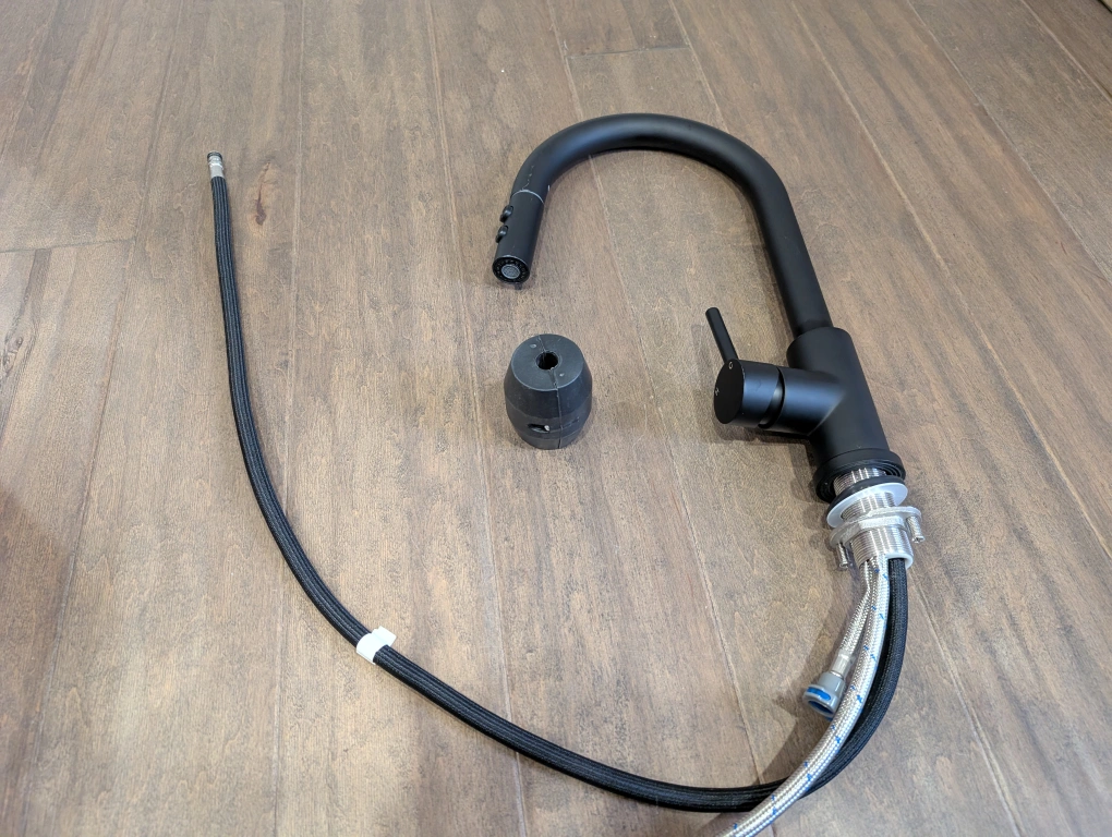 231Brand new matte black pull out kitchen faucet for sale. Pull down sprayer, stainless steel, has a couple scratches or marks. $45 FIRM. faucet, water, reno, vanity, counter, water, bathroom, sink, renovation, hose, plumbing, kitchen, drain, shower, tub, bath, bathtub, swivel, pull down, pull out, spray, nozzle, handle, Moen, Delta, dishes, column, tower, massage, jets, LED, temperature, valve, rainfall, waterfall, wand, spout