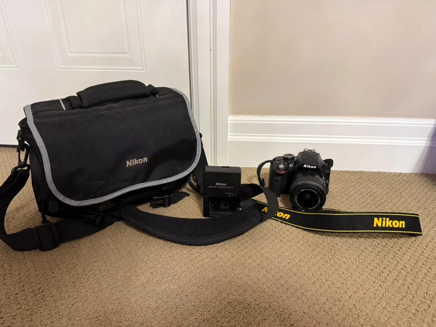 65Selling a used Nikon D3100 DSLR camera. It comes with an AF-S DX Nikkor 18-55mm lens, perfect for everyday shooting. Also included is a Nikon camera bag and battery charger. Great for beginners looking to get into photography!