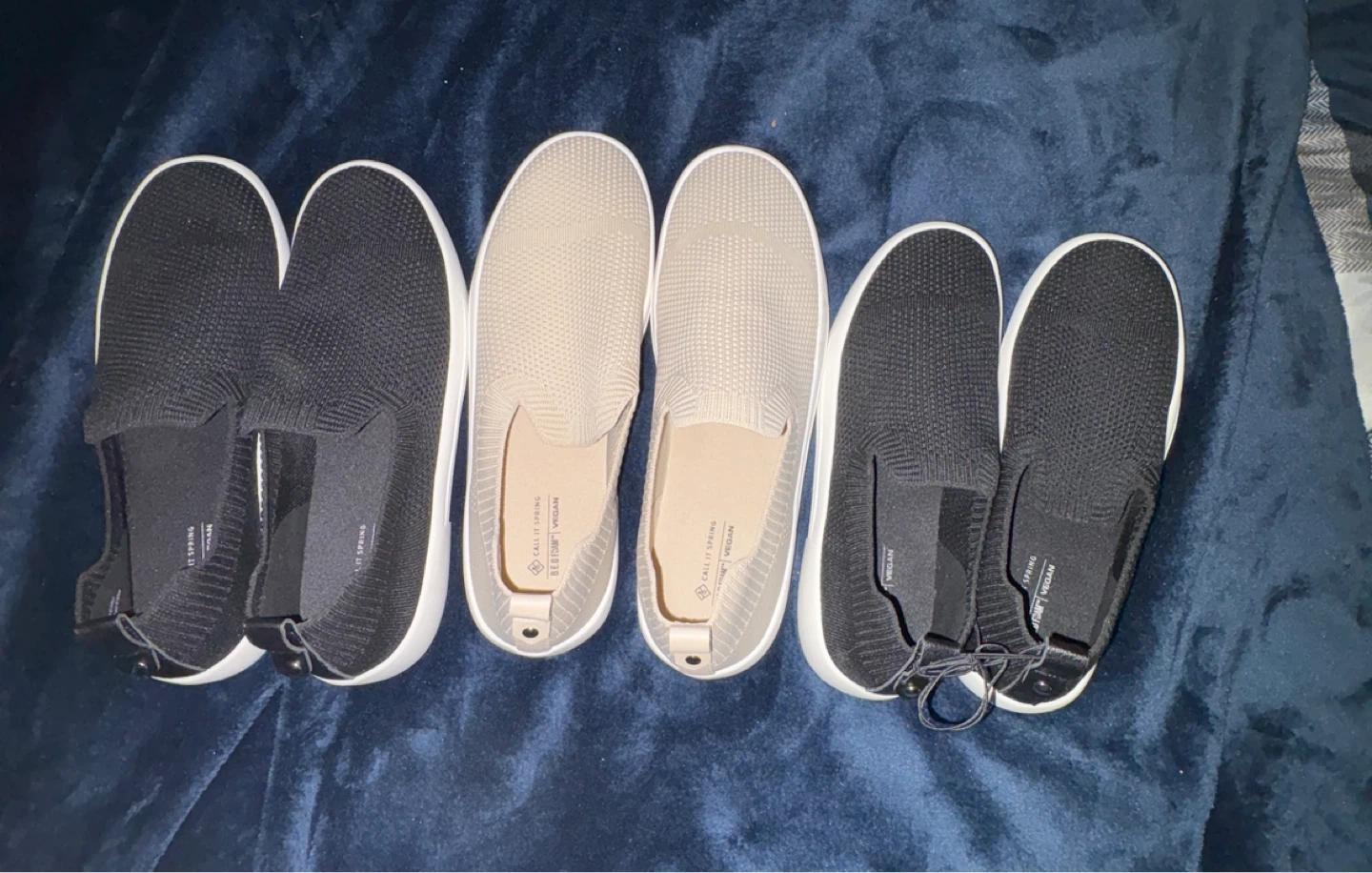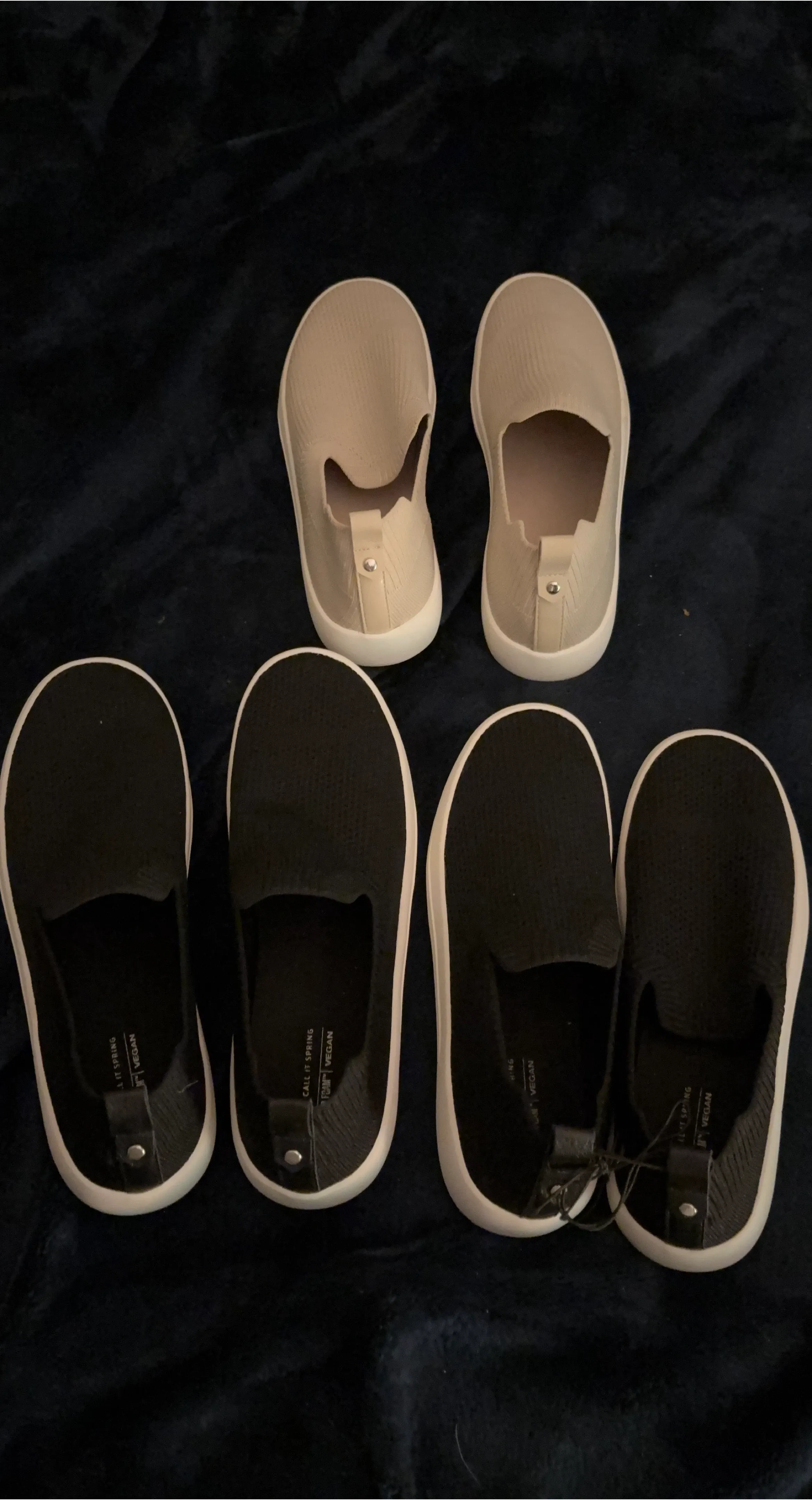 I have a couple of pairs of Call It Spring slip-on sneakers. One pair is black and the other is beige. They are marked as vegan.