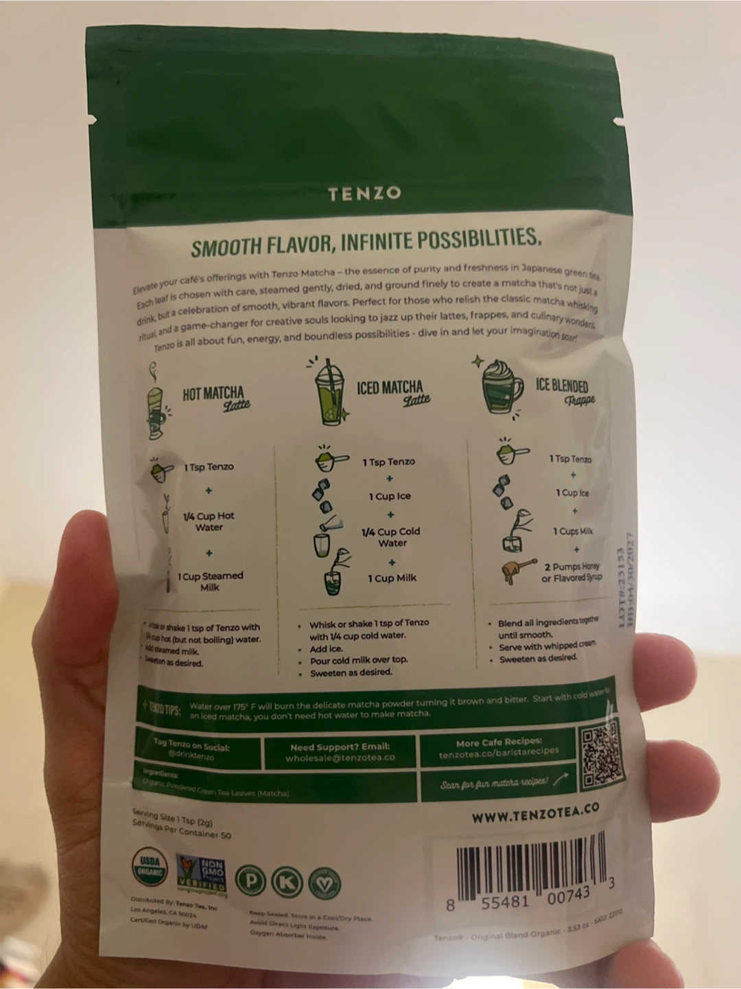 Selling a bag of Tenzo Original Blend Organic Matcha. It's 100% pure green tea powder and ceremonial grade. Perfect for lattes, frappes, and culinary wonders! It's also sugar-free, non-GMO, gluten-free, and vegan