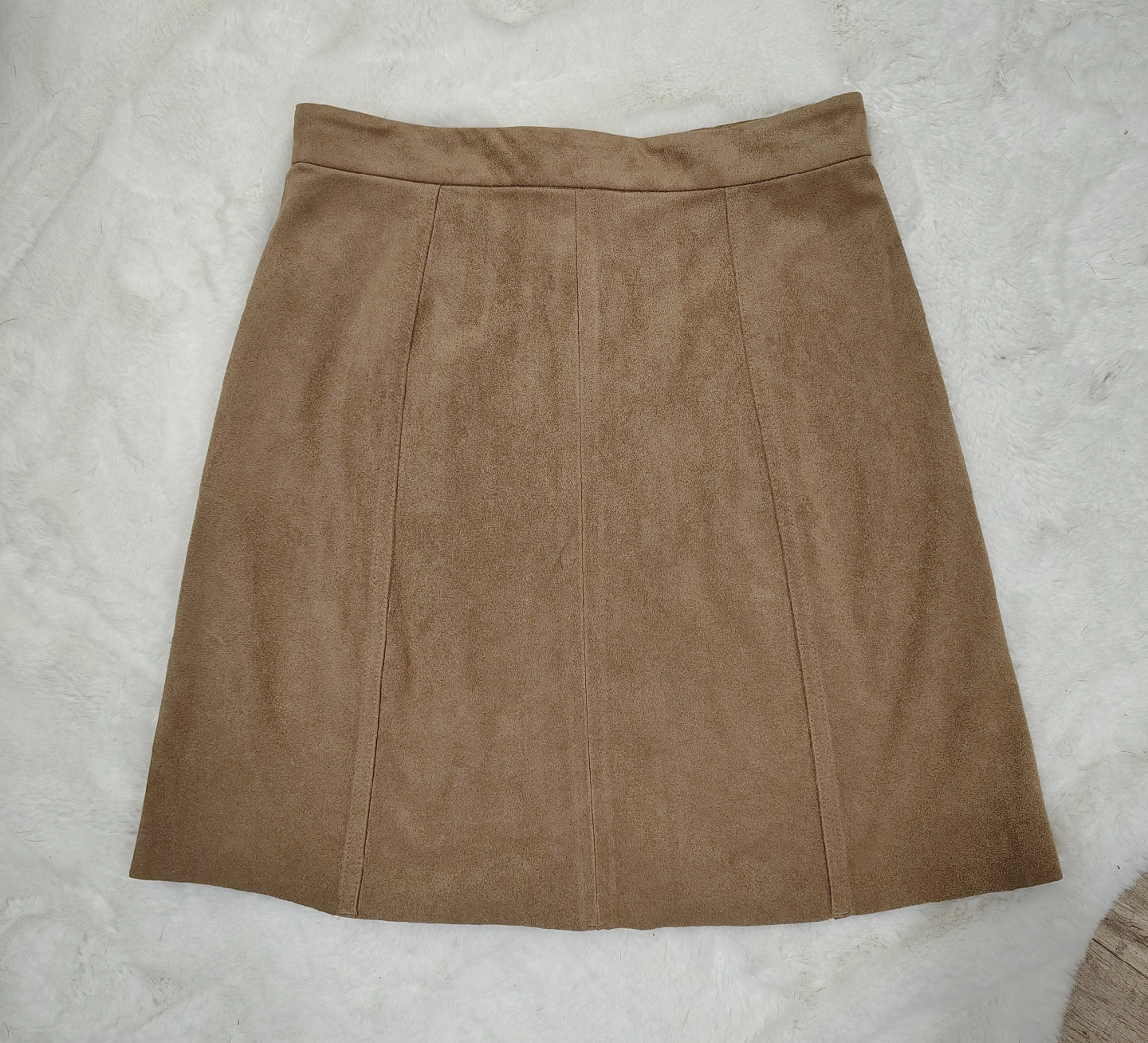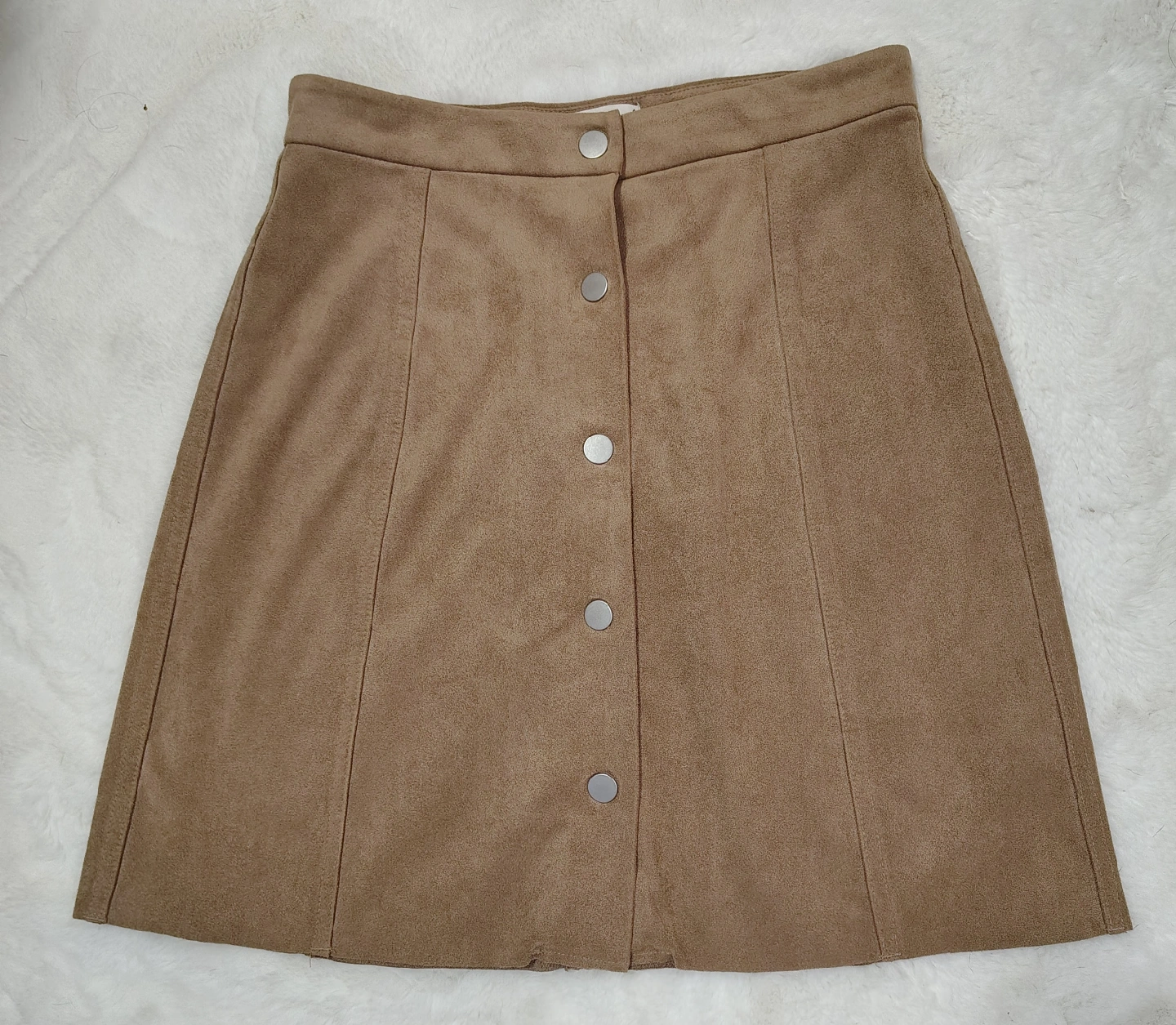 Selling a Free People suede mini skirt in a lovely neutral tone! It's a size 4 and perfect for adding a touch of style to any outfit. The skirt features a classic A-line silhouette and button-down front. It's in great condition and ready for a new home! Perfect for fall photos and pumpkin spice runs!