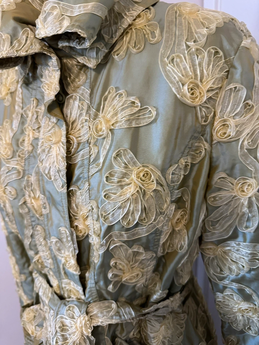 Ladies Size Medium Beautiful Dress Jacket - Like New Worn Twice lovely dinner / classy jacket it’s a light Green, with a blue gold colour shift with 3-D ribbon flowers Pick up in the lobby of my condo, located in Scarborough at Finch and McCowan