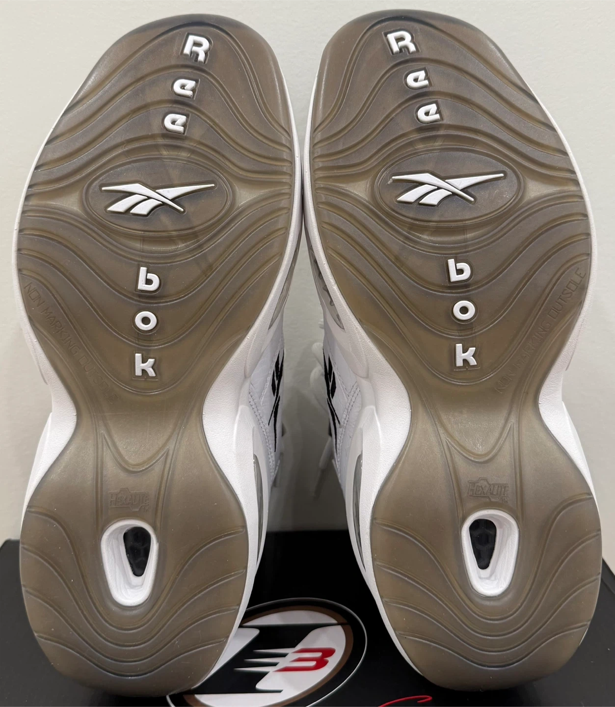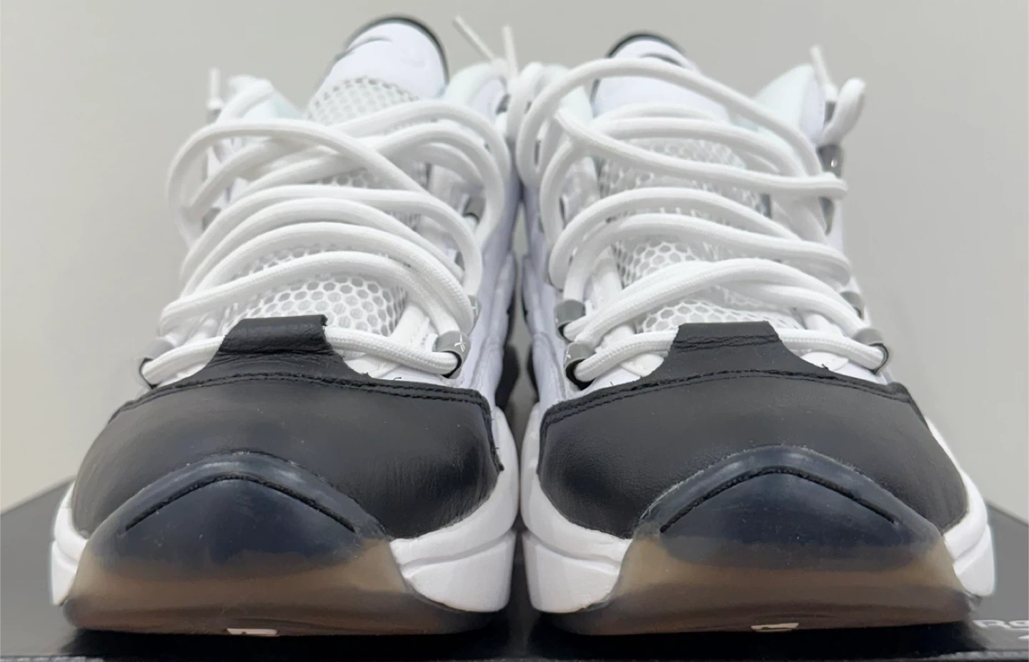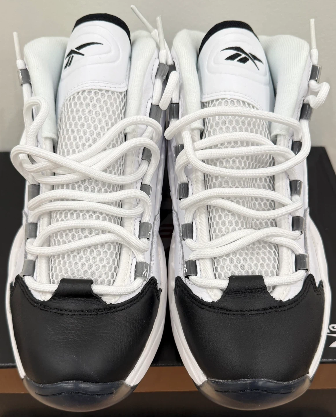 26*Worn Once to Try On - Scuff/Crease on Right Toe* Elevate your footwear collection with the Reebok Question Mid Why Not Us, a sneaker that pays homage to the legendary Allen Iverson. These mid-top athletic shoes feature a striking white and navy blue colourway that's sure to turn heads and provide a vibrant addition to any outfit. With a design that's both timeless and contemporary, they're a perfect blend of style and function. Crafted for comfort and performance, the Reebok Question Mid sneakers are a part of the iconic Reebok Question product line. This pair, released in 2021, boasts the same durability and support that the brand is known for. Ideal for men who appreciate a sneaker that offers both a classic look and modern comfort.