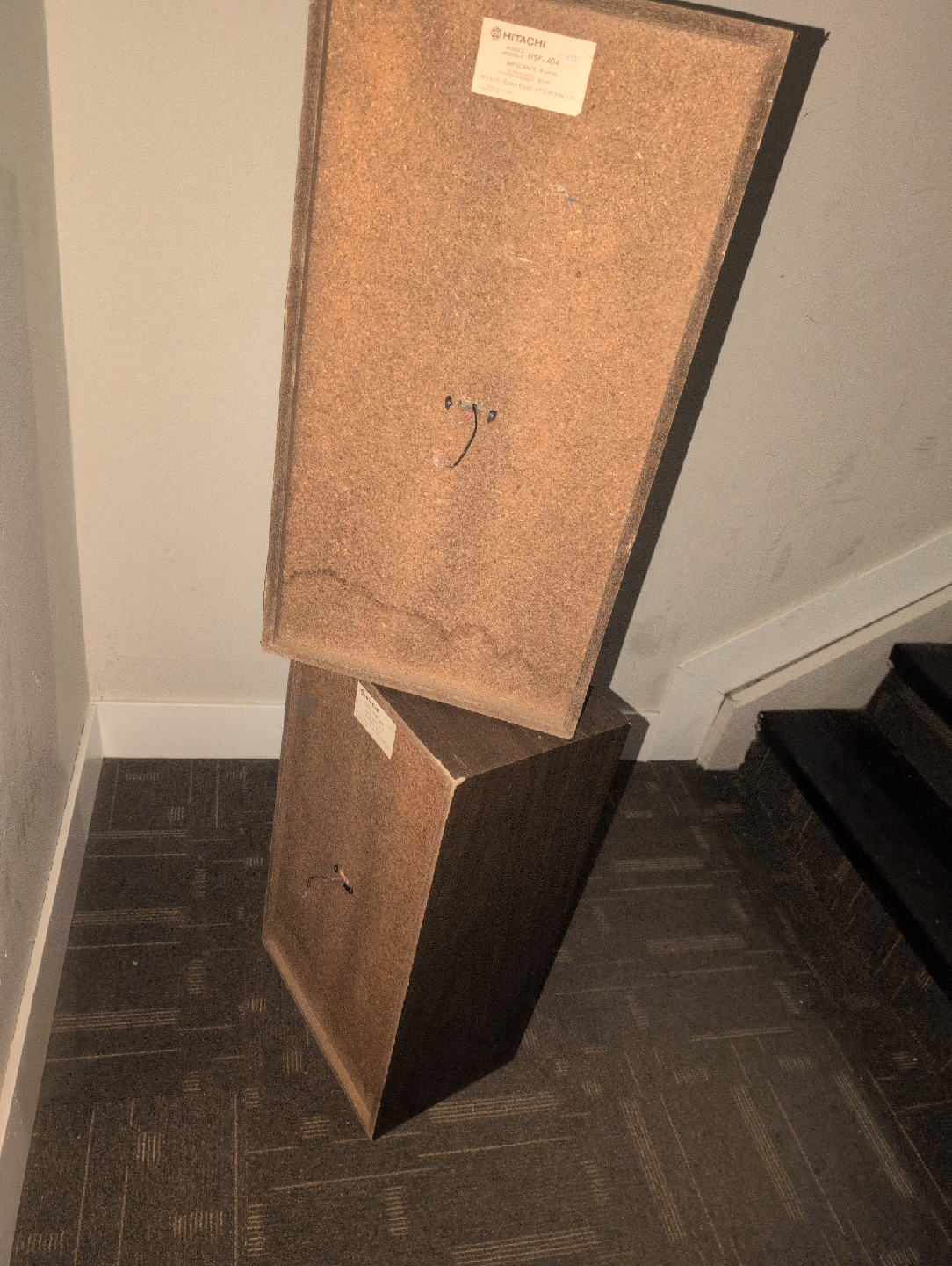 Selling a pair of Hitachi HSP-404 speakers. They have an impedance of 8 ohms and a maximum input of 40W. Great for someone looking for a vintage sound system!