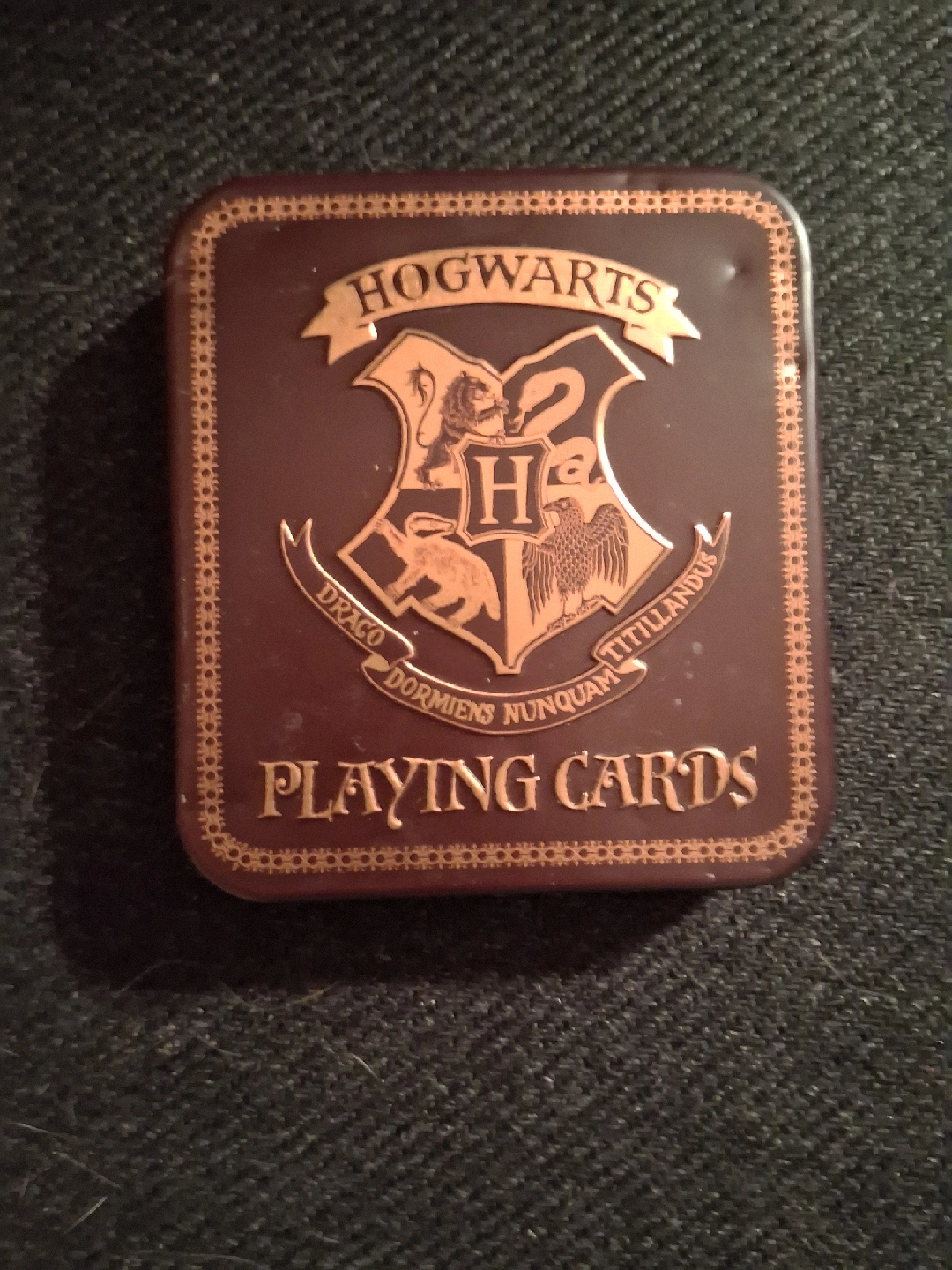 Harry Potter Hogwarts playing cards! Includes 1 pack of 52 playing cards and 1 jokers is missing I believe, all in a decorative tin.