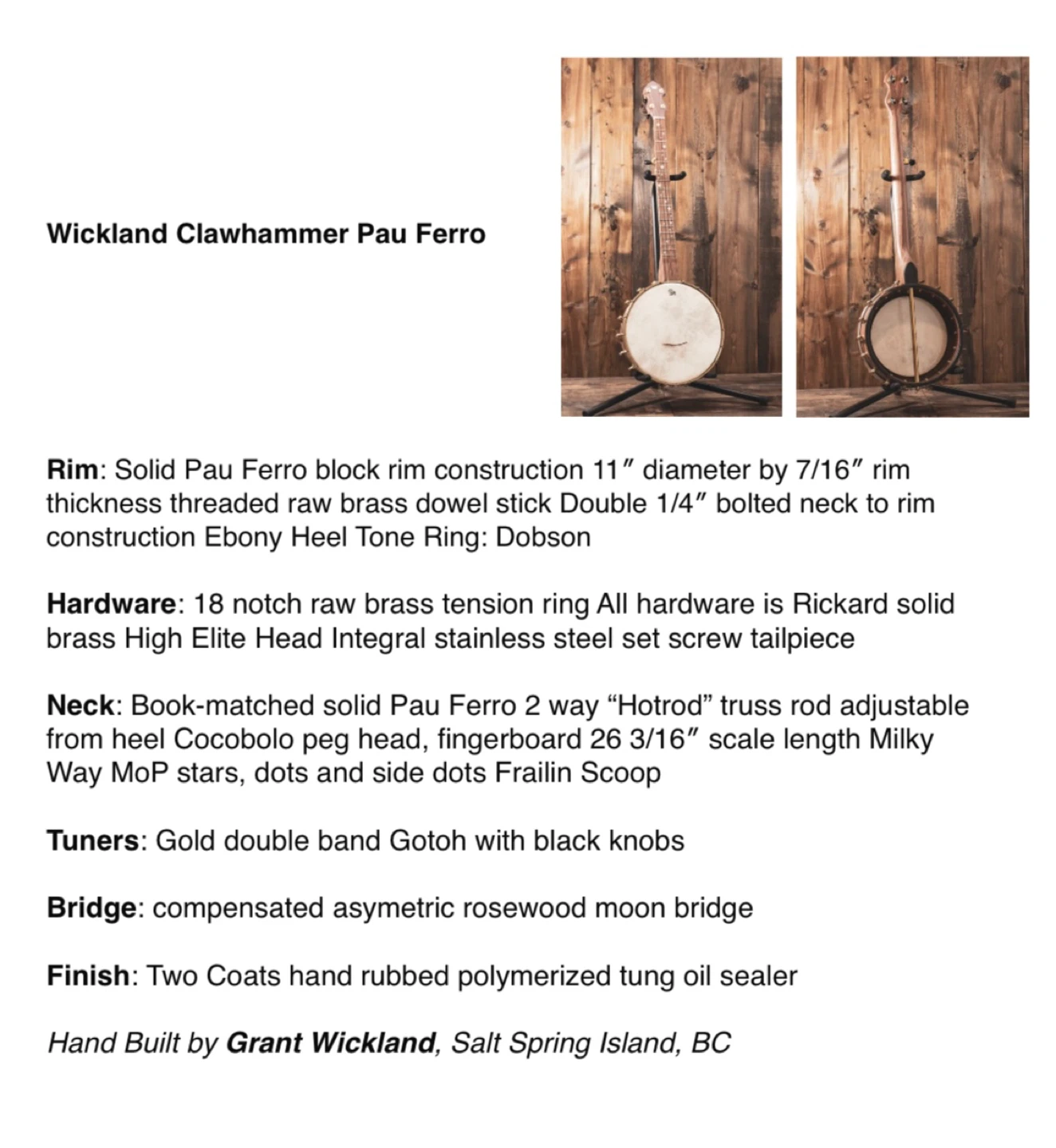 ‼️ d o w n s i z i n g ‼️ Selling a Wickland clawhammer Pau Ferro Banjo Star inlays on the neck. Soft case included. See photo for more details. Great for anyone looking to learn or add to their collection! The banjo is in good condition and ready to play!! 🚫 clean, smoke-free home / no pet hair Thank you for your interest! Merci de votre intérêt !