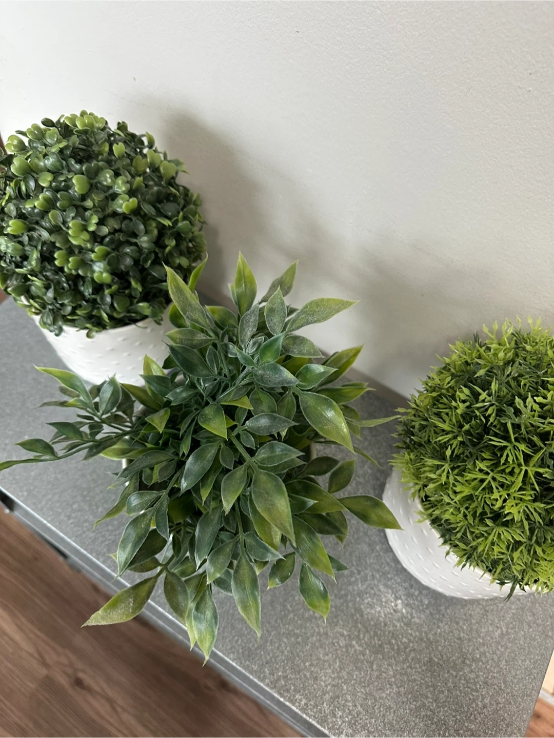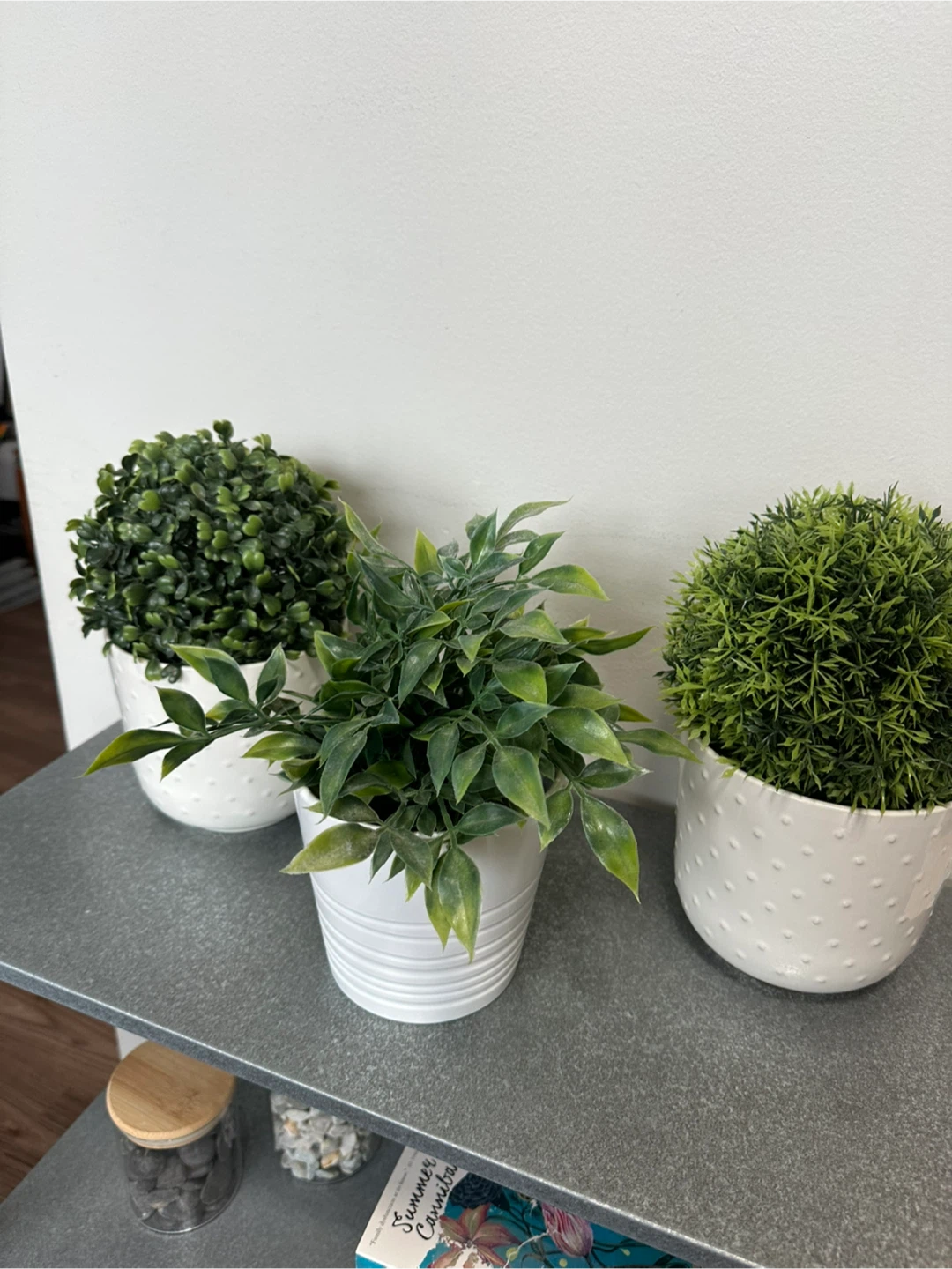 Selling a set of three artificial potted plants. They're perfect for adding a touch of greenery to your space without the hassle of maintenance. For use indoor or outdoor.