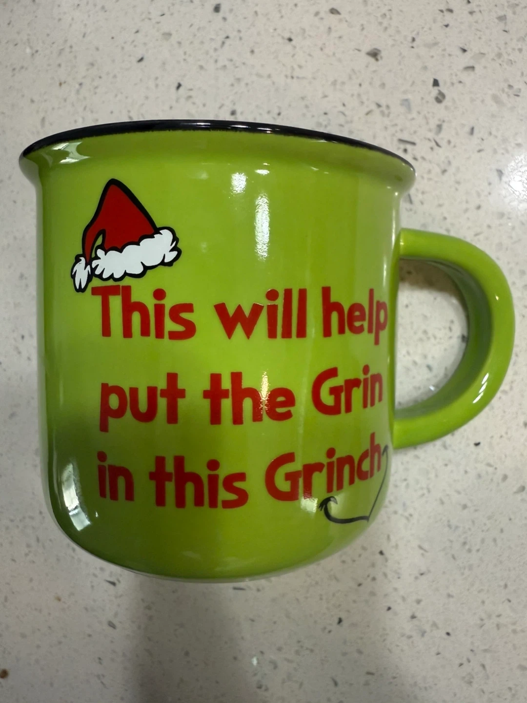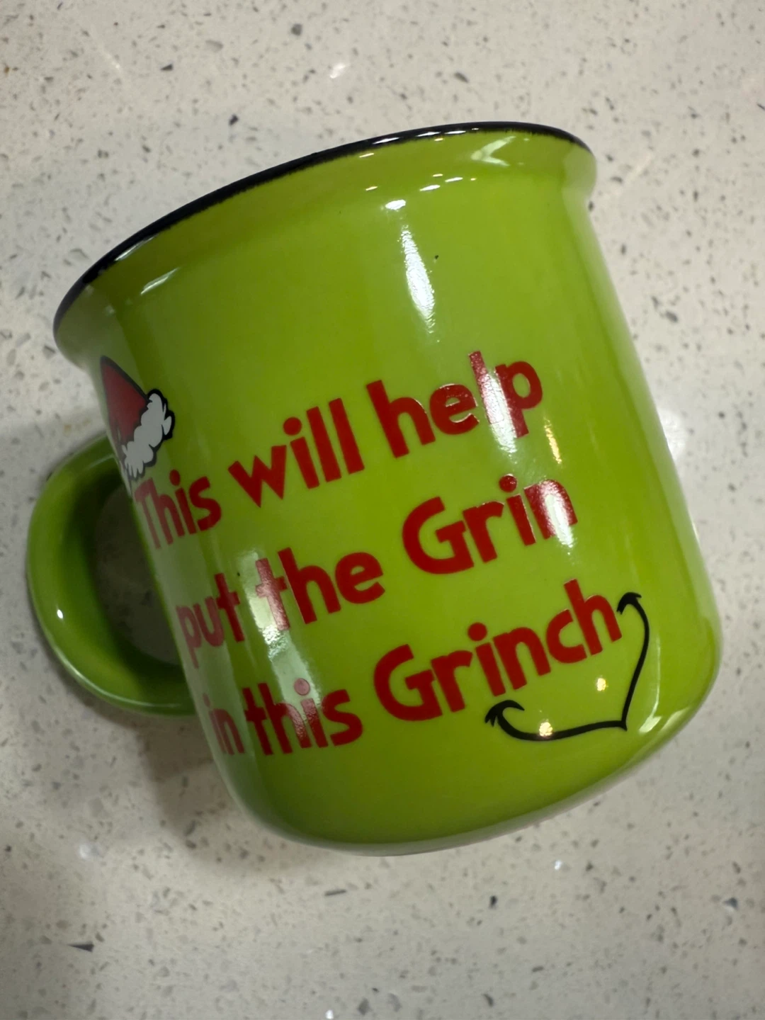 Get ready to put the Grin in this Grinch mug! It's a vibrant green and holds 14 oz / 400 ml. It's also dishwasher safe and microwavable Smoke and Petfree Home. Serious Inquiries only. Pick up at Rosenthal.