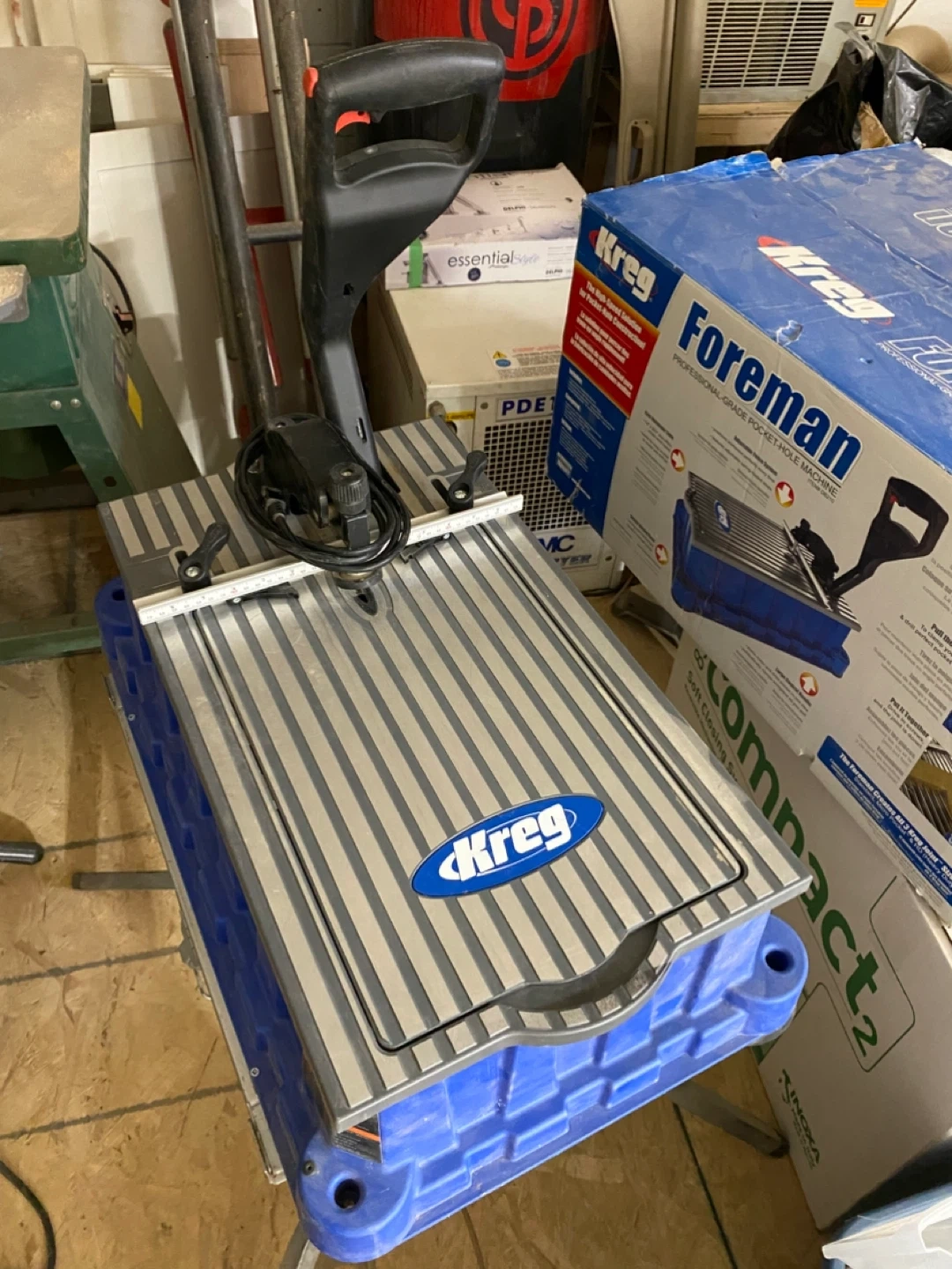 Selling a Kreg Foreman professional-grade pocket-hole machine. It's the high-speed solution for pocket-hole construction! Perfect for creating strong and concealed joints in your woodworking projects. It's in great shape and ready for your next project