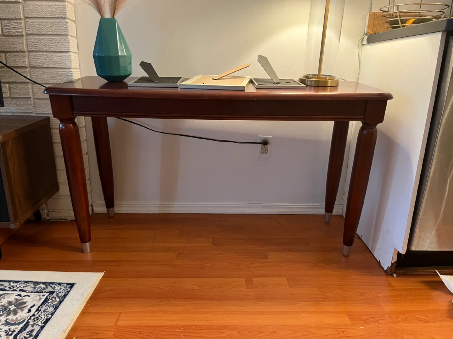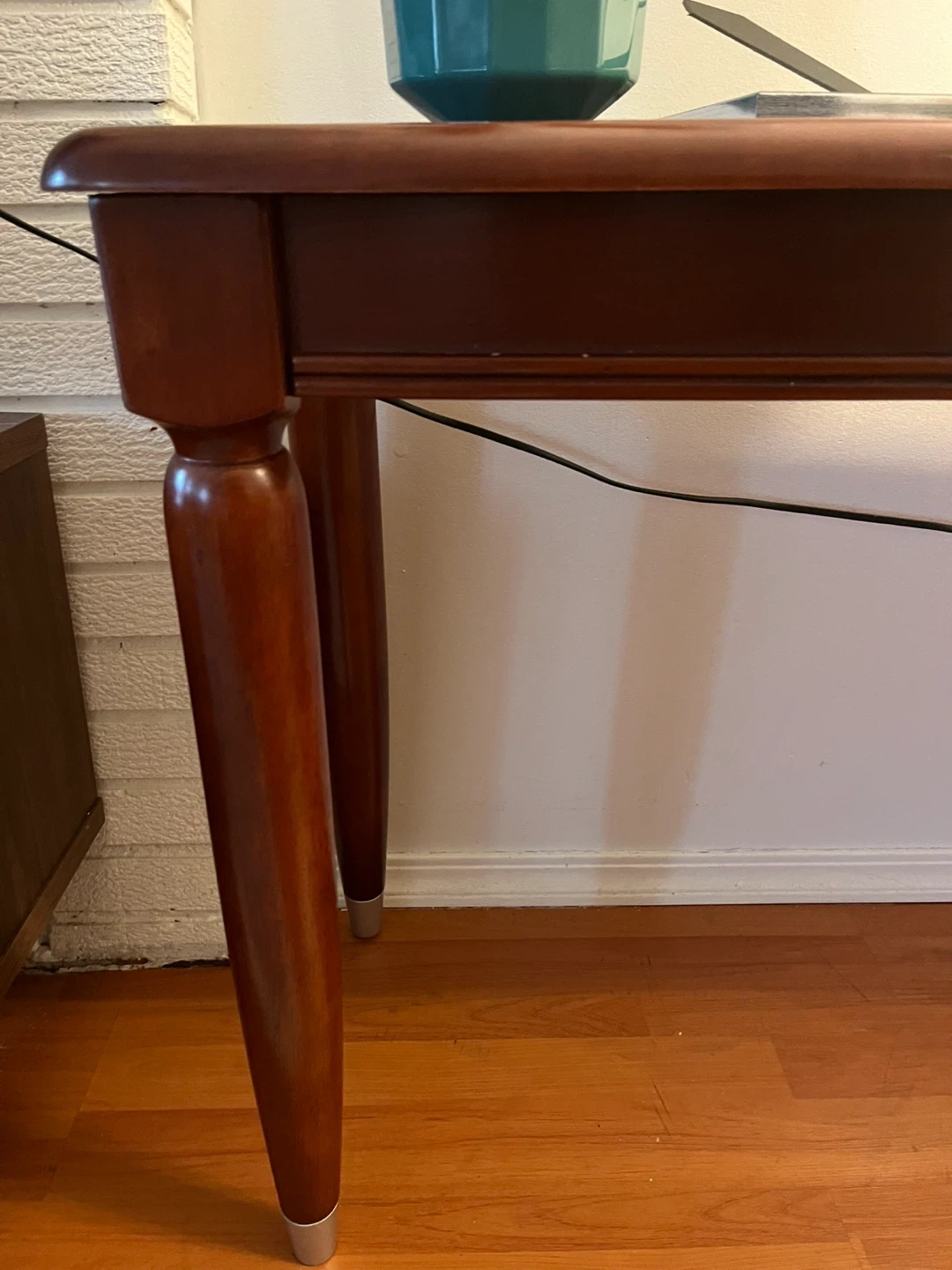 38Selling a lovely wooden desk. It's in great shape and would look perfect in a home office or study space. The desk features a rich, warm wood tone and has a classic design that will complement any decor. It's sturdy and ready for a new home!
