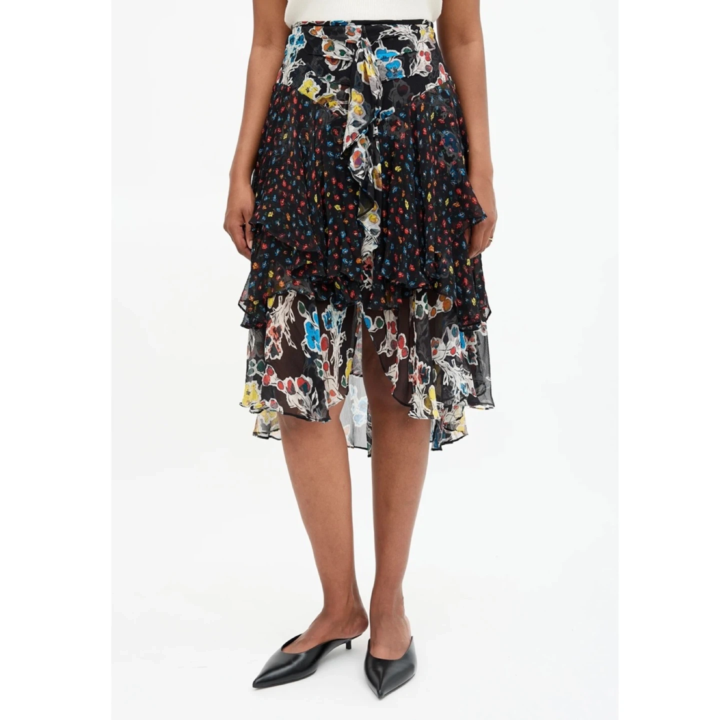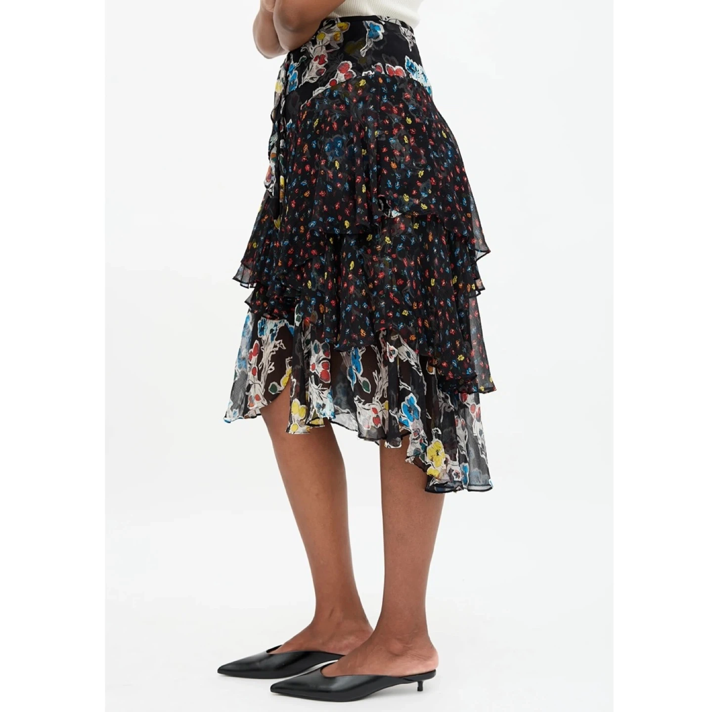 Jason Wu floral layered skirt. Made of lightweight 100% silk. It drapes and moves so beautifully. There's no staining or damage. It's clean and in excellent condition.