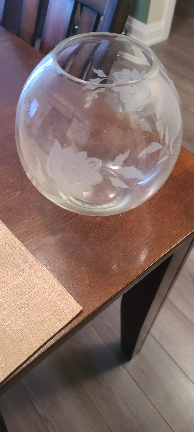 Selling a lovely glass bowl with a floral etched design! It's in great condition and would look lovely as a centrepiece or decorative item great as a vase