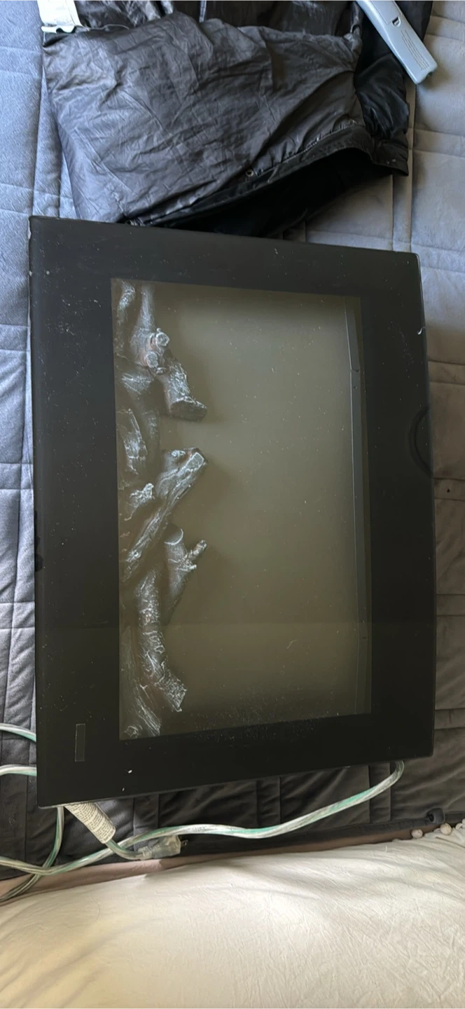 Selling an electric fireplace insert with a black frame. It features a realistic flame effect and would be a cozy addition to any room