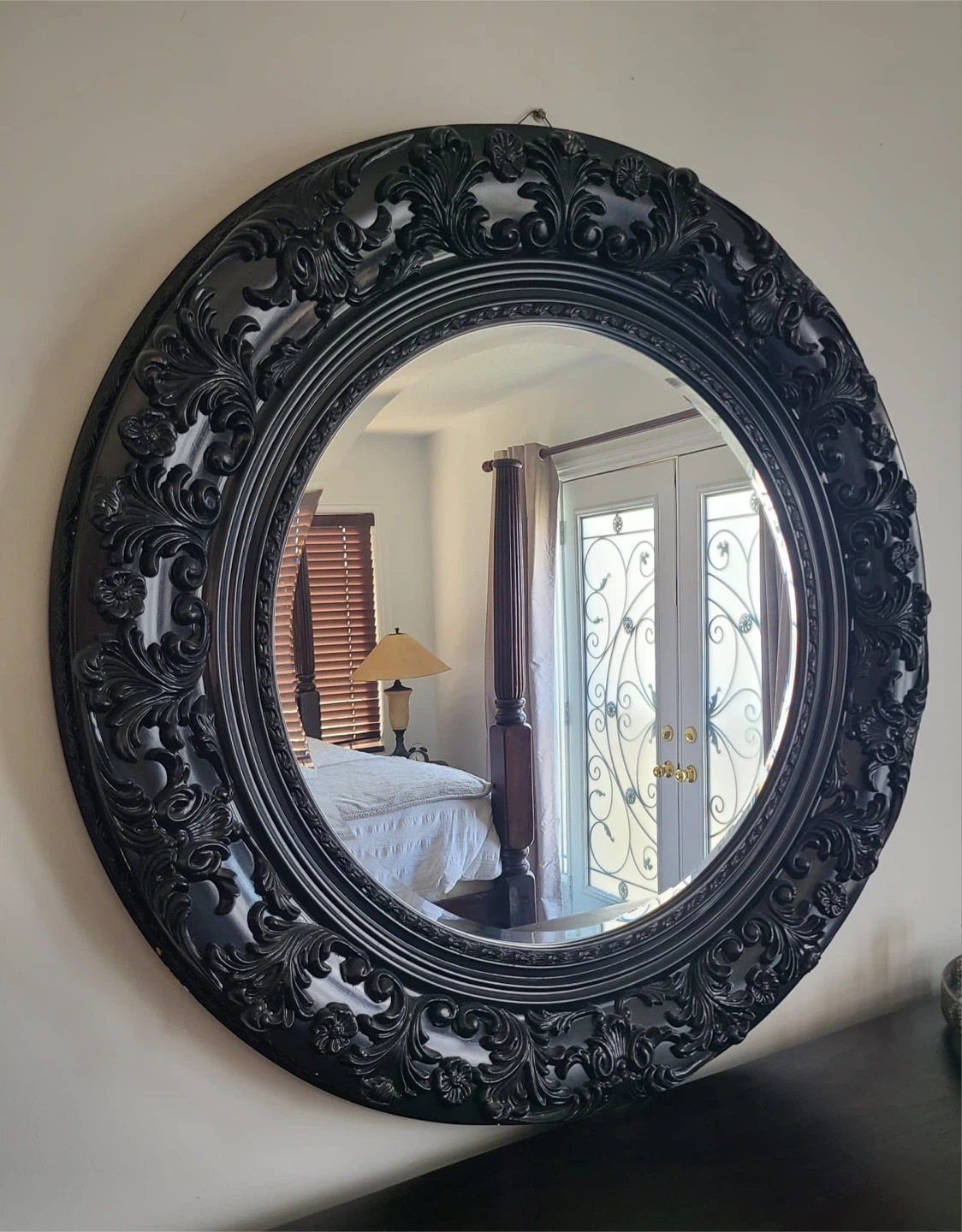 71Selling a beautiful black ornate round mirror! It would be a great addition to any room. It's in great condition and ready for a new home