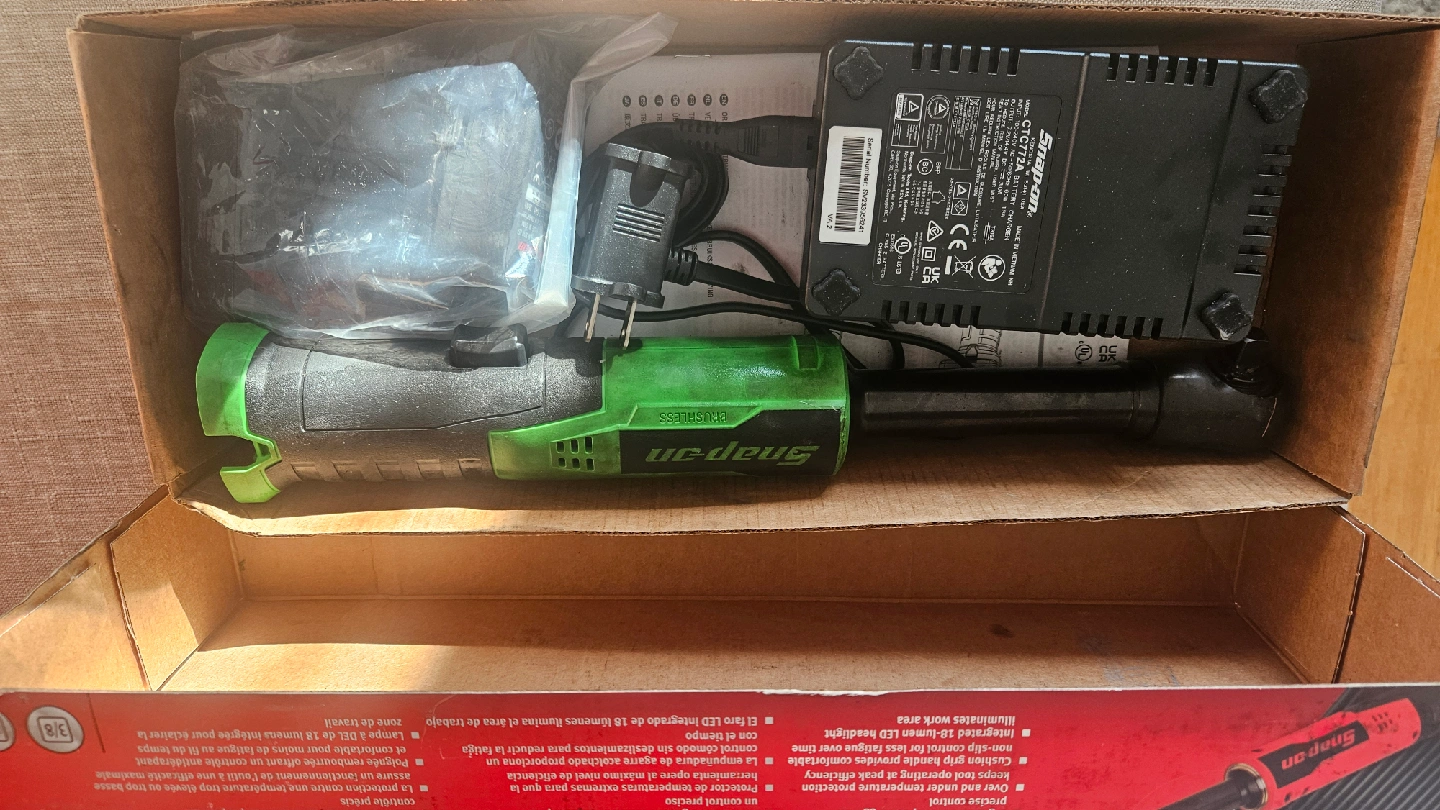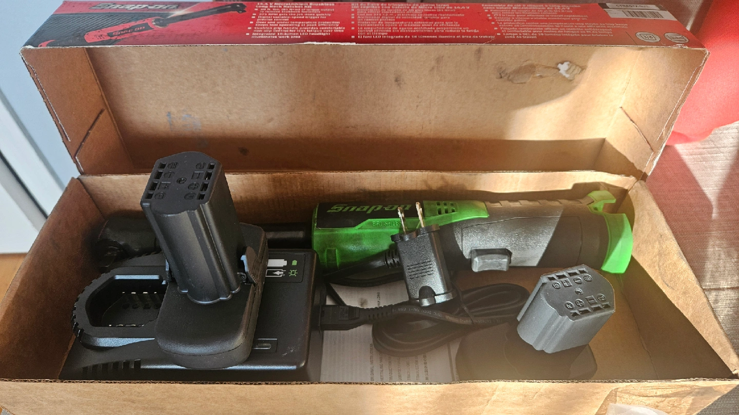 Selling a Snap-on 14.4 V MicroLithium Brushless Long Neck Ratchet Kit! This kit includes the ratchet, battery, charger, and the original box. It's perfect for those hard-to-reach spots. Get your hands on this reliable and powerful tool today