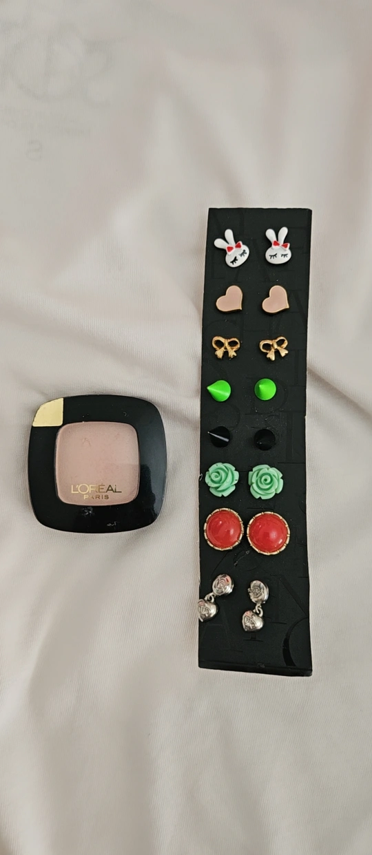 1000+Selling a L'Oreal Paris powder and a set of cute earrings! The powder is in good condition, and the earrings are a fun mix of styles.