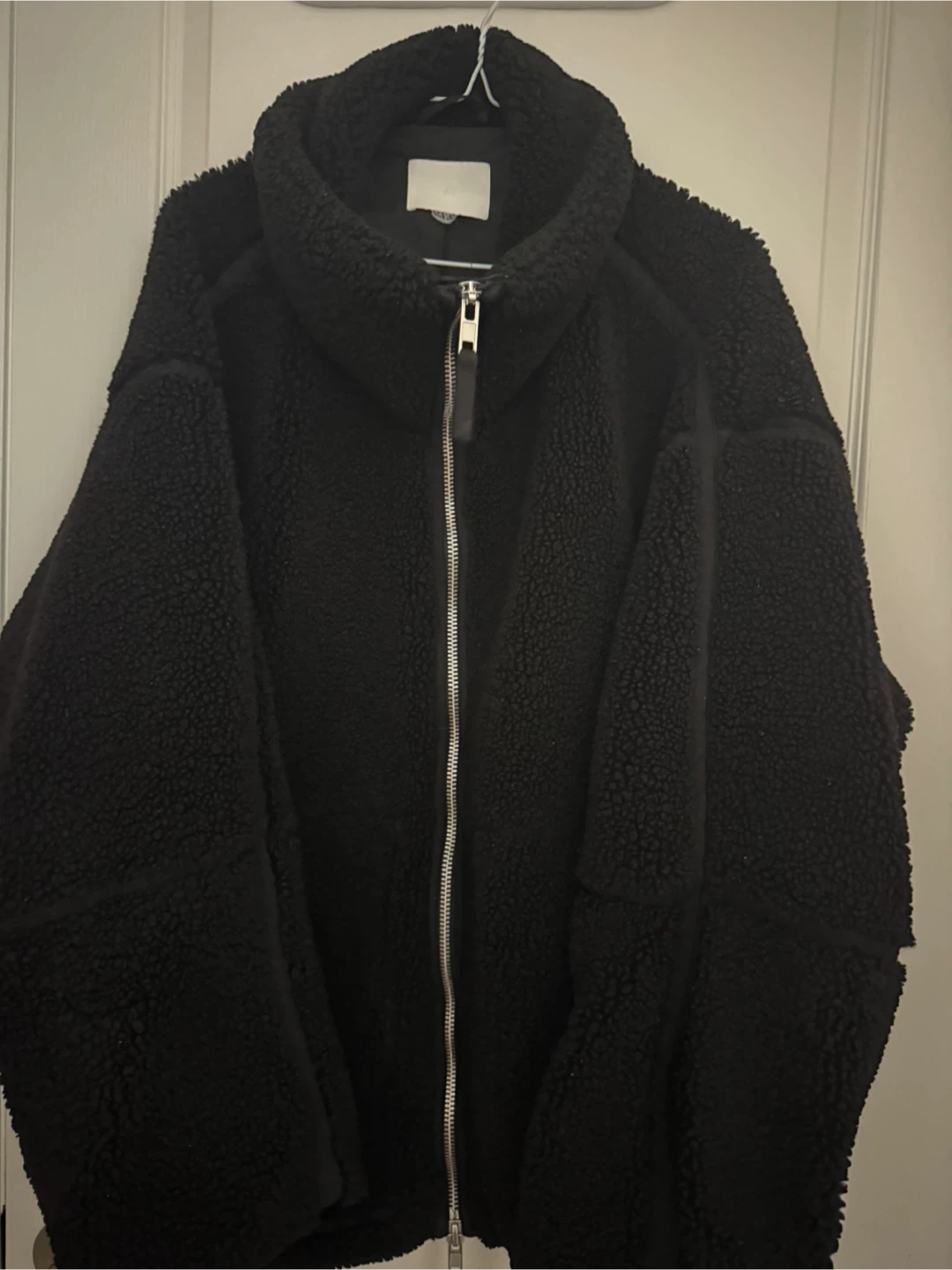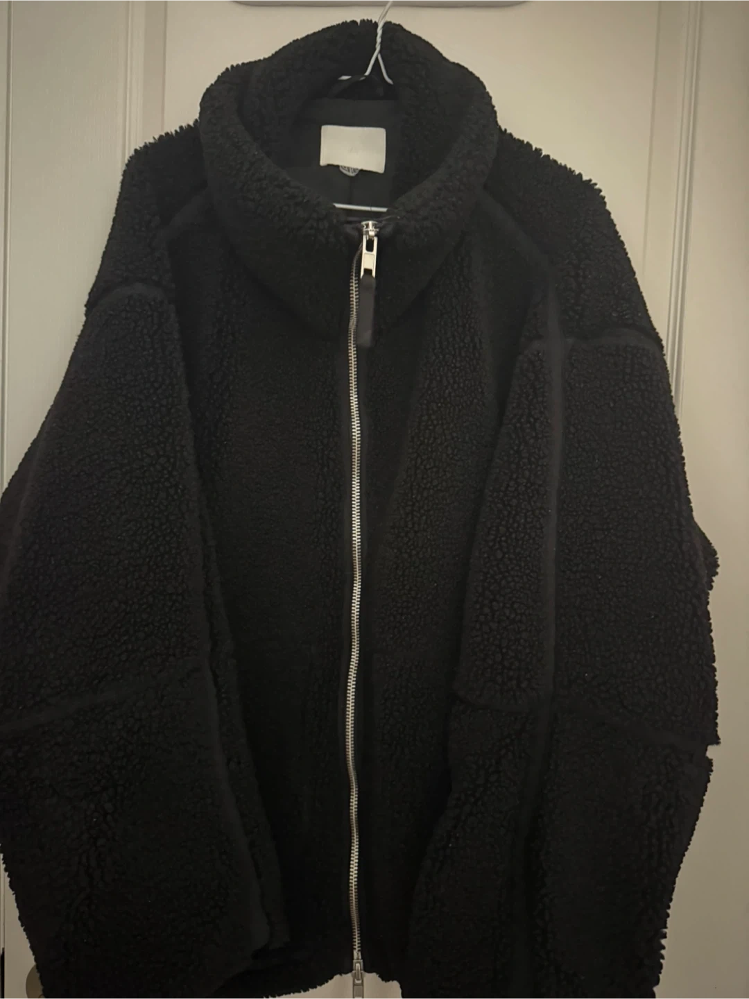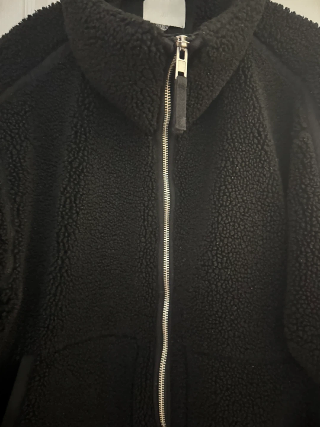 Cozy black fleece jacket from H&M! It's in great condition and perfect for staying warm on chilly days. The shell and lining are both 100% polyester