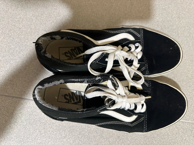 10These are used Vans shoes, perfect for casual wear, but showing signs of wear and tear. These stylish black and white sneakers offer comfort and a classic look for everyday activities. If you're reading this, they're still available!