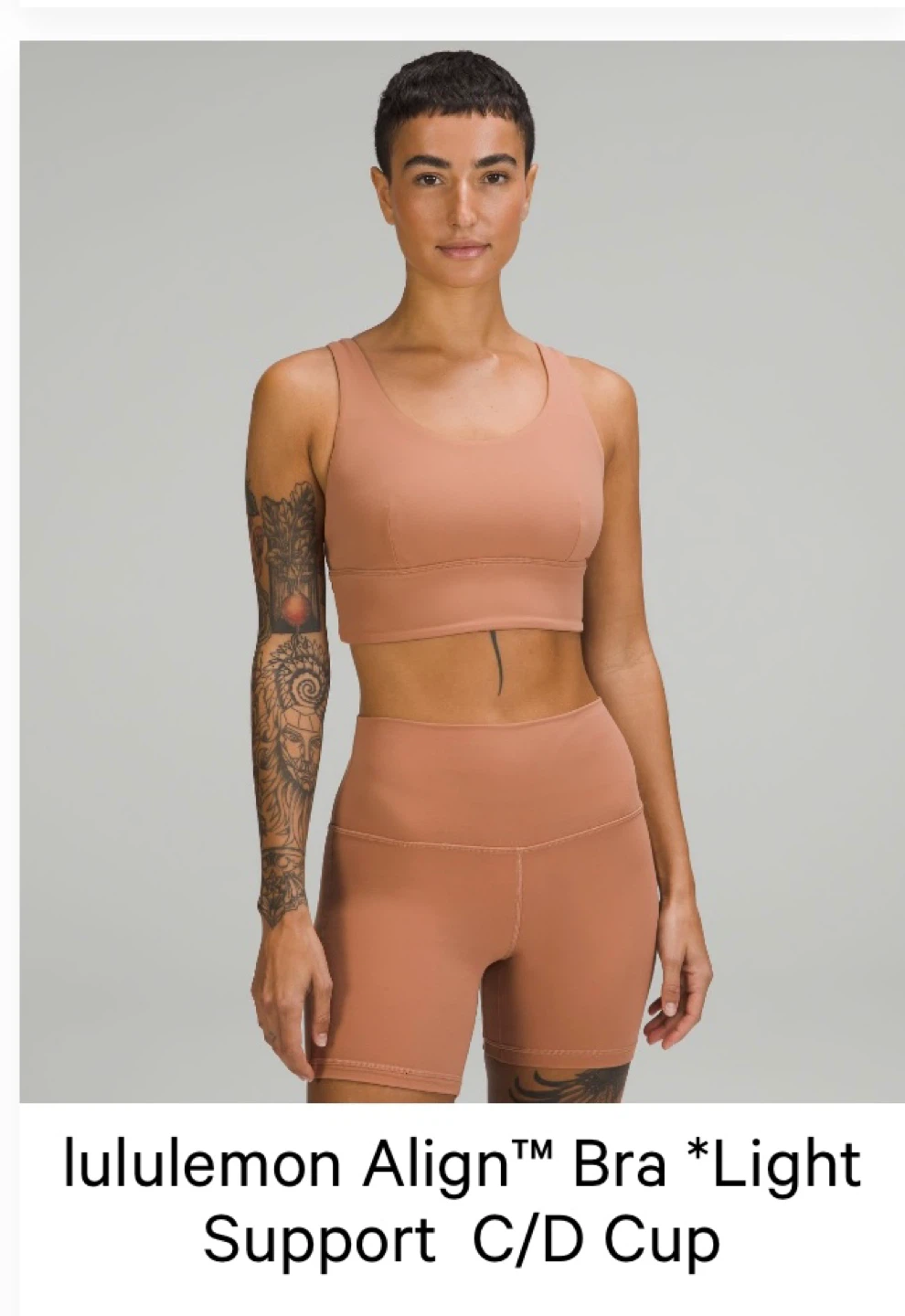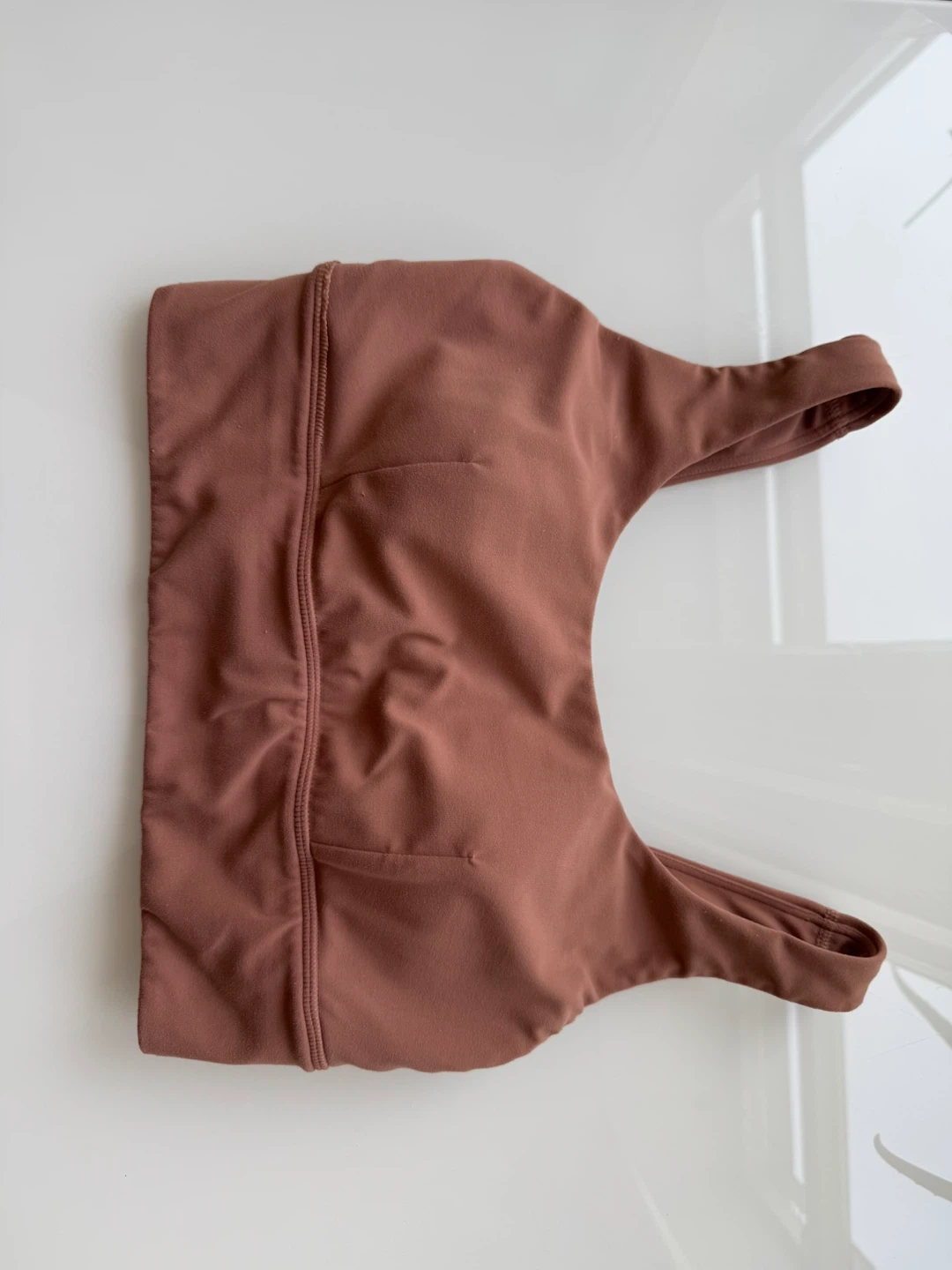 Selling a Lululemon Align Bra with light support, perfect for C/D cups. It's in a lovely dusty clay colour and size 8. Great for yoga or everyday wear!