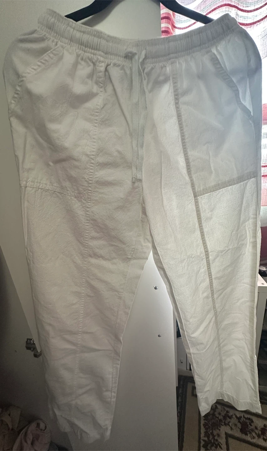 Selling a pair of Carroll Hart pants in size small. They are made of 100% cotton and are a crisp white colour. Perfect for a casual, comfy look!