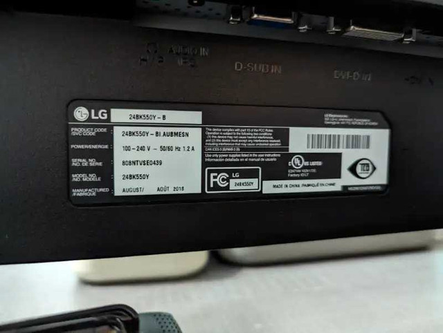This LG 24BK550Y monitor features a 24-inch screen with a sharp display, perfect for office work or home entertainment. Key Features: * Screen Size: 24 inches * Model: 24BK550Y-B * Connectivity: HDMI, DisplayPort, DVI-D, VGA, USB * Resolution: 1920 x 1080 One for $80 or two for $140. Pickup at Lakeshore W and Parklawn.