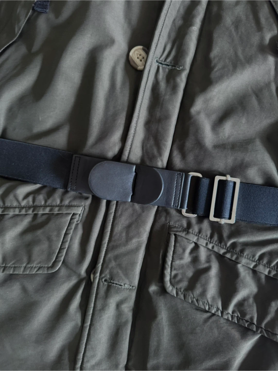 It’s water and wind-resistant and it comes with a sturdy black leather belt, 2-way exterior zipper with wind flap with reinforced buttons, elasticized-cuffs, 1 zipped interior chest pocket, 2 exterior chest pockets with zips, left upper arm pocket with Velcro fastening, 2 front hand-warmer pockets with Velcro flaps.
