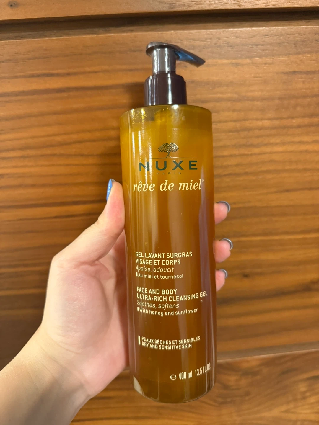 Selling a bottle of Nuxe Rêve de Miel Ultra-Rich Cleansing Gel for face and body. This gentle cleanser soothes and softens skin with honey and sunflower. It's perfect for dry and sensitive skin. The bottle contains 400 ml / 13.5 fl oz