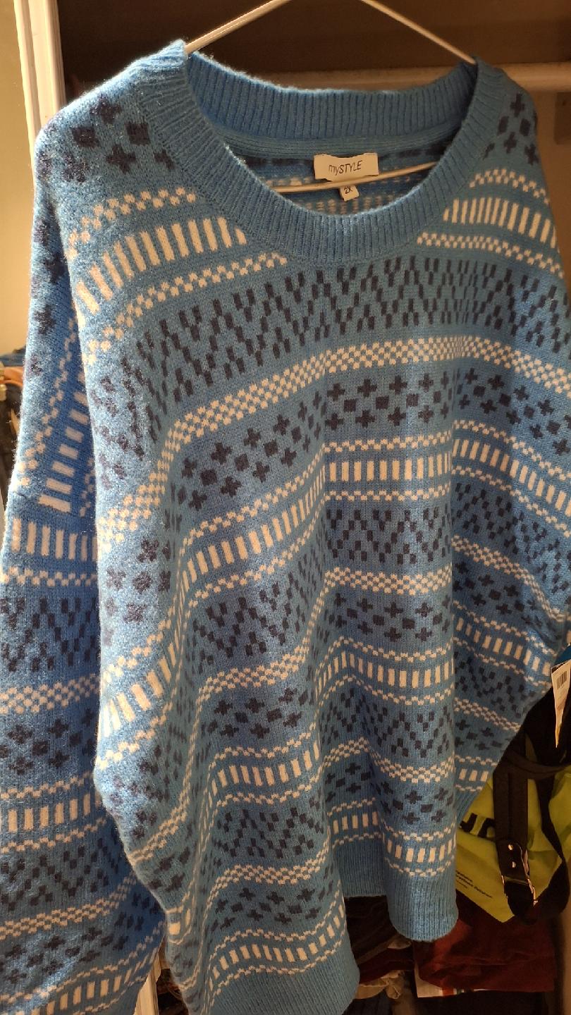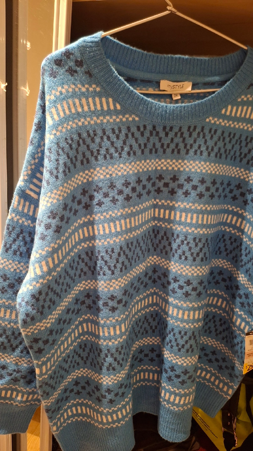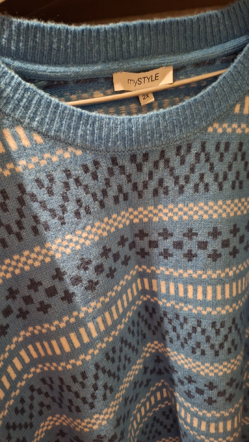 Cozy up in this My Style Winter Wonderland sweater! It's a size 2X and features a lovely aqua and abstract pattern. Originally bought for $29, this sweater is perfect for those chilly days