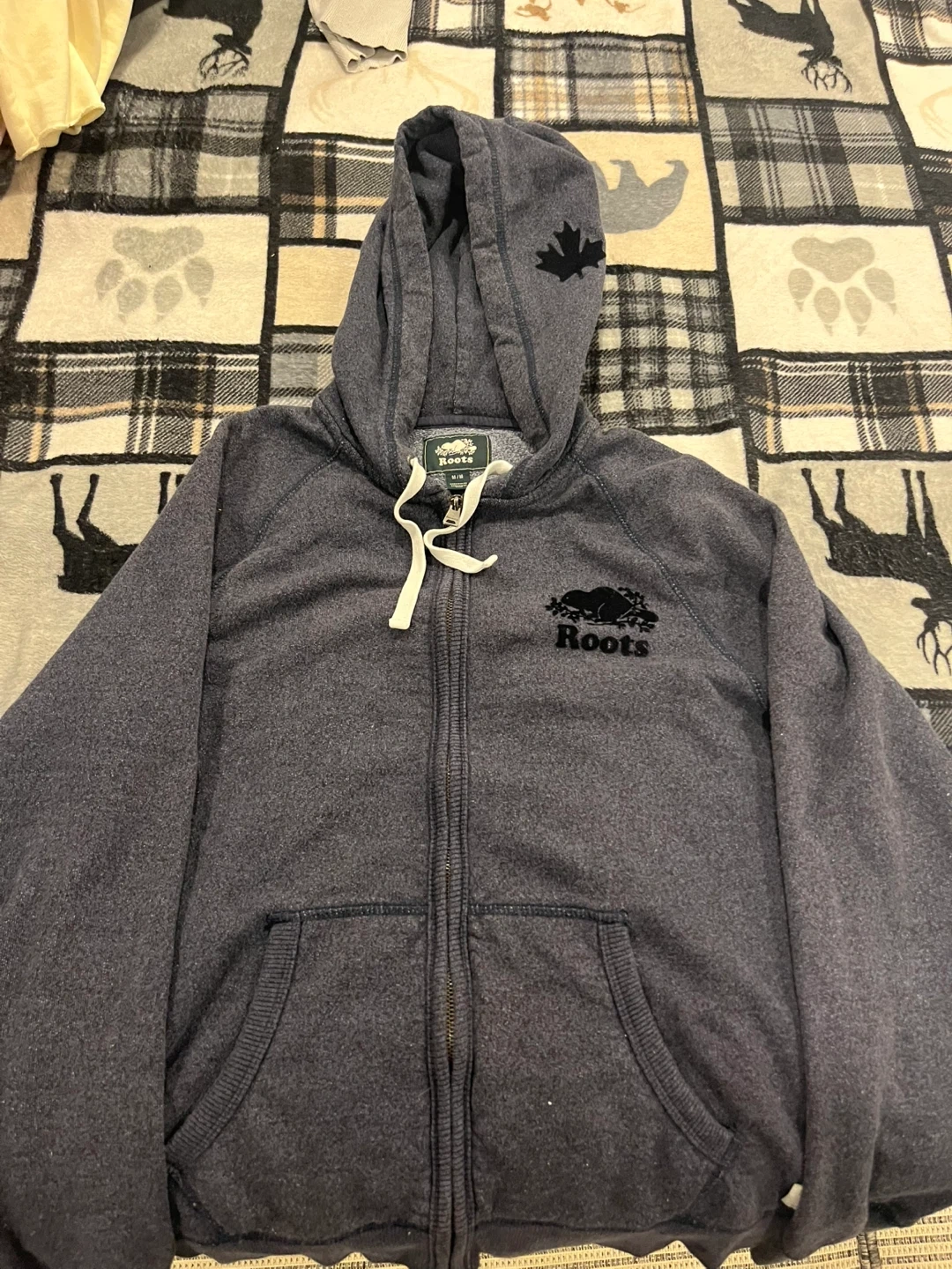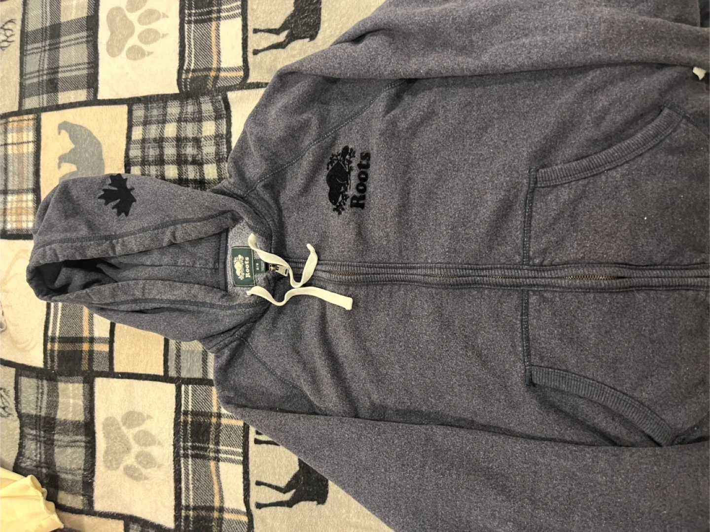 70Roots full zip hoodie in size medium. It's in great condition and perfect for layering or wearing on its own. Features the classic Roots logo and a comfortable fit!