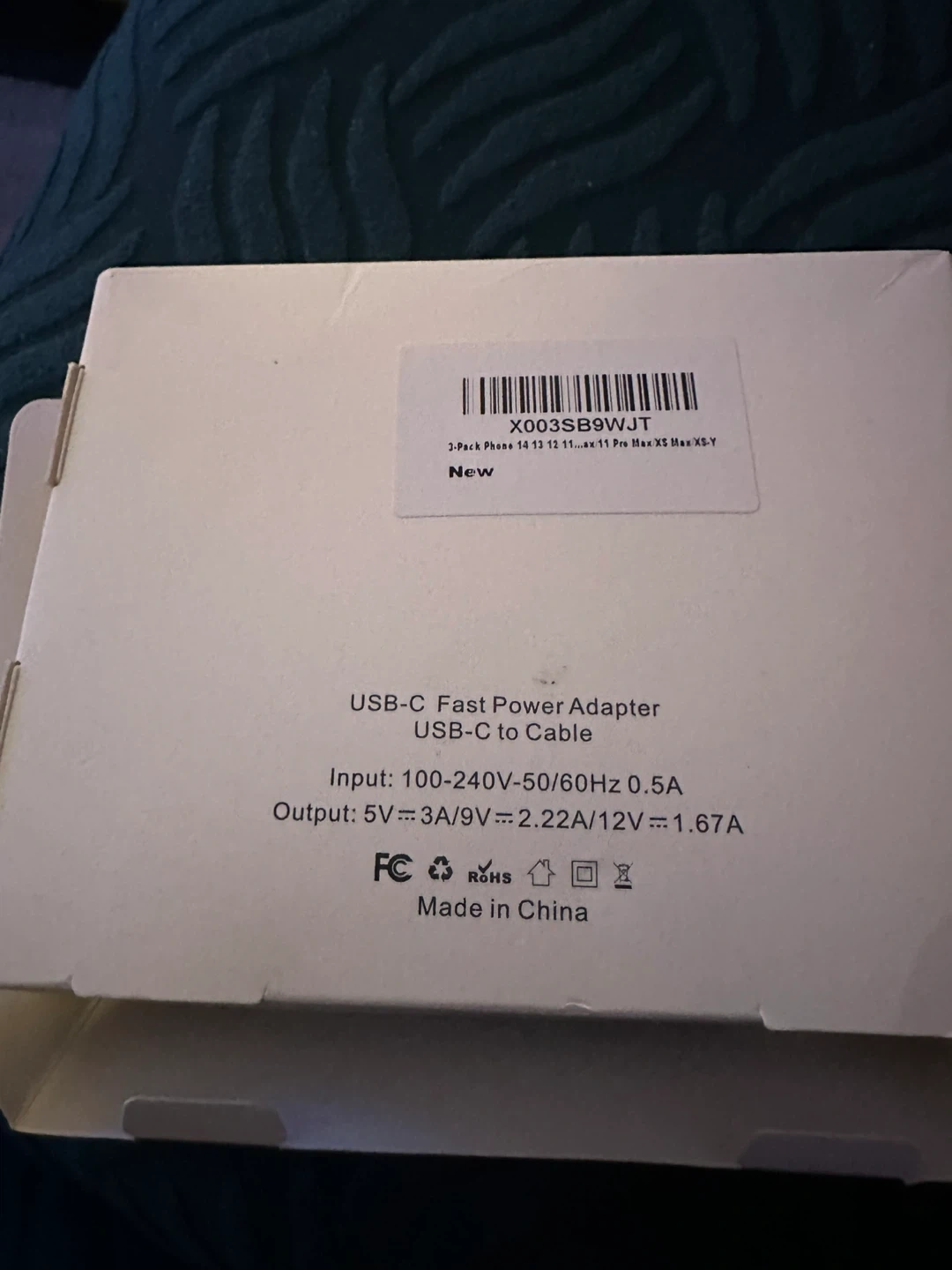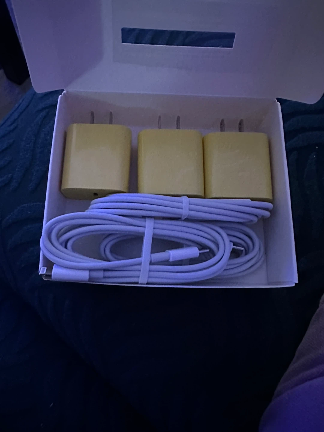 237Selling a brand new 3-pack of phone chargers! It's a USB-C fast power adapter and comes with a USB-C to cable. Input is 100-240V~50/60Hz 0.5A and output is 5V=3A/9V=2.22A/12V=1.67A. The box is included
