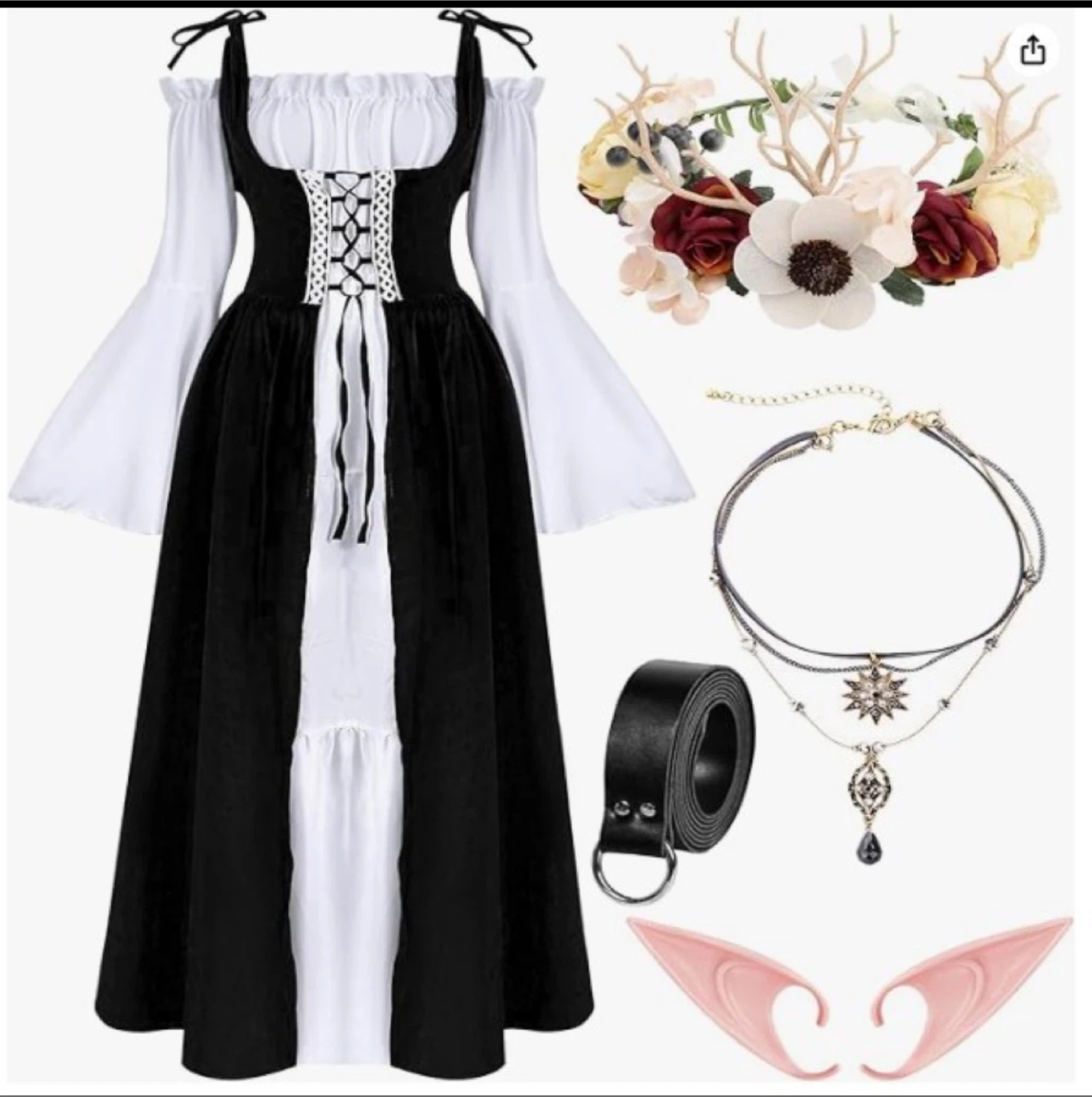 Selling a Renaissance dress costume set! It includes the dress, a belt, and a floral crown. The dress is a size XL, perfect for a comfortable fit. The set is in great condition and ready for your next costume event