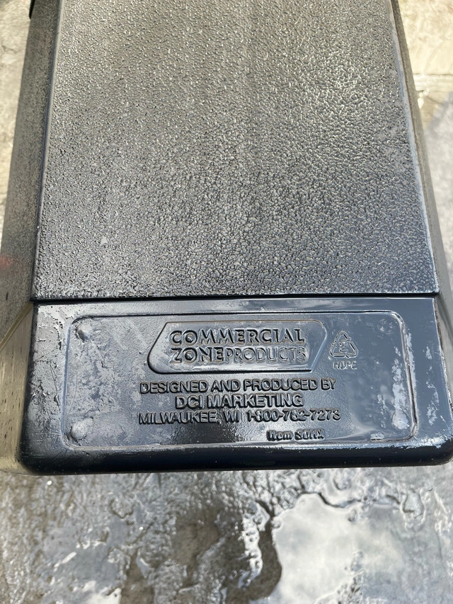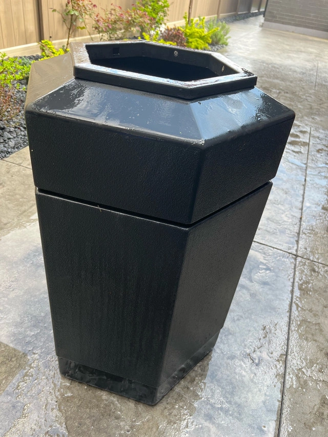 This Commercial Zone black trash receptacle is in good, used condition and ready to serve its purpose, whether it be in your home or business! Keep your area clean and tidy with this sleek, durable bin. Specifications: * Brand: Commercial Zone * Colour: Black * Material: Durable Plastic * Design: Weather-resistant If you're seeing this ad, the trash receptacle is still available, so no need to wonder!