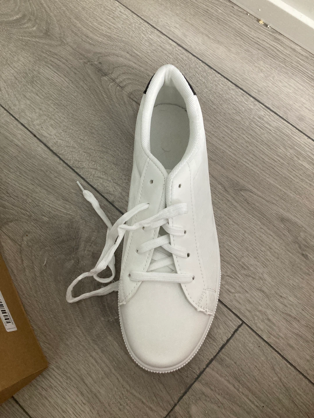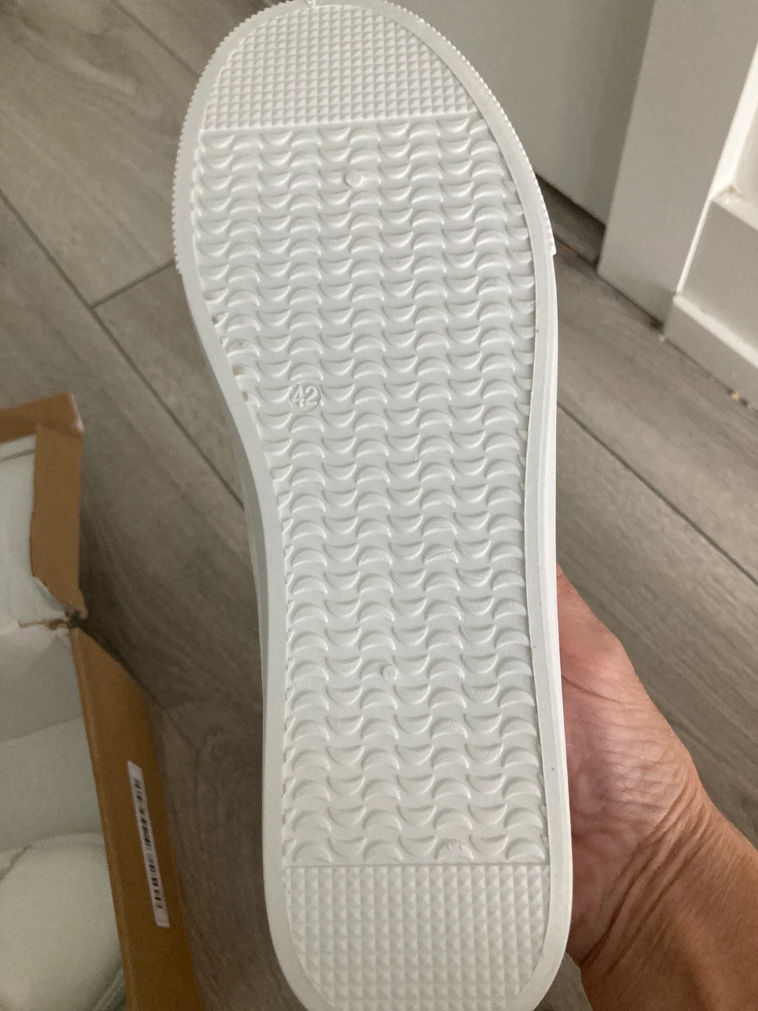 186Selling a pair of white sneakers in size 42, which is approximately a US size 9. They come with their original box