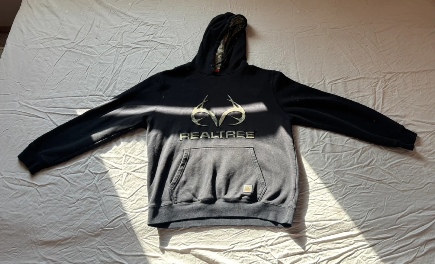Selling a Realtree hoodie in size large. It's in great condition and perfect for keeping warm on those chilly days. The hoodie features the Realtree logo and a comfortable fit. Don't miss out!