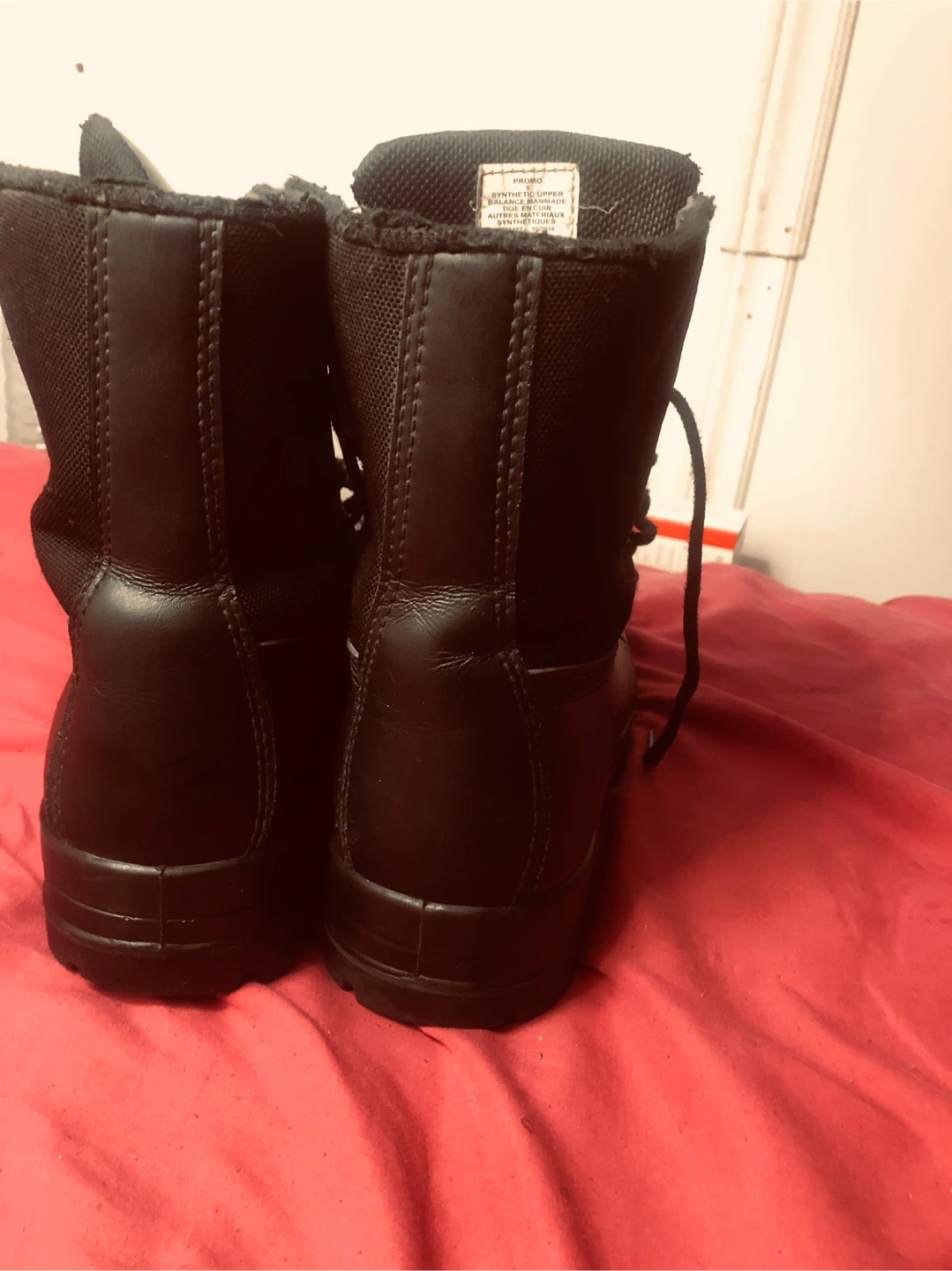 Selling a pair of Workload work boots in black. They appear to be in good used condition. The upper material is synthetic. Please note that the size is 9
