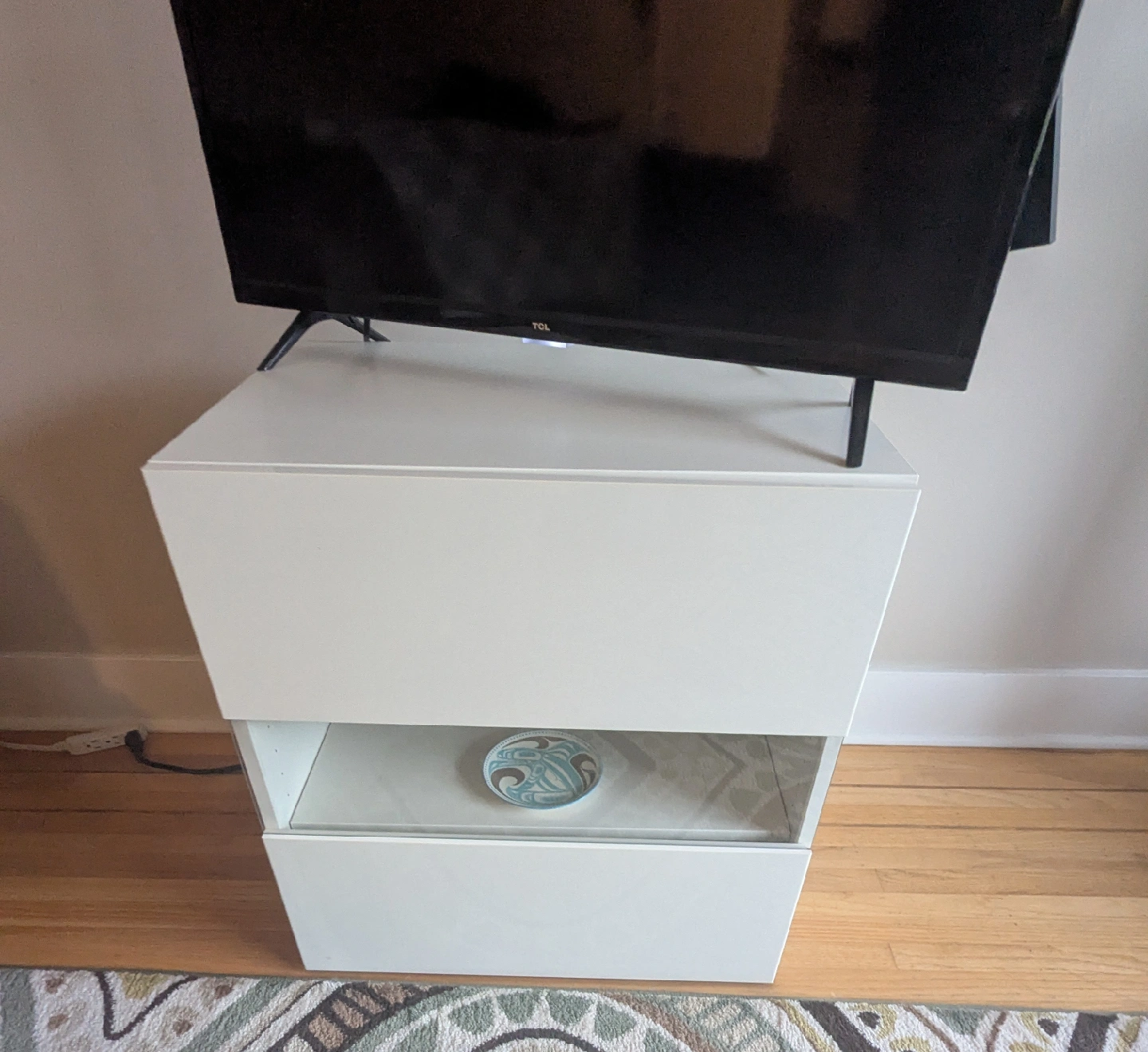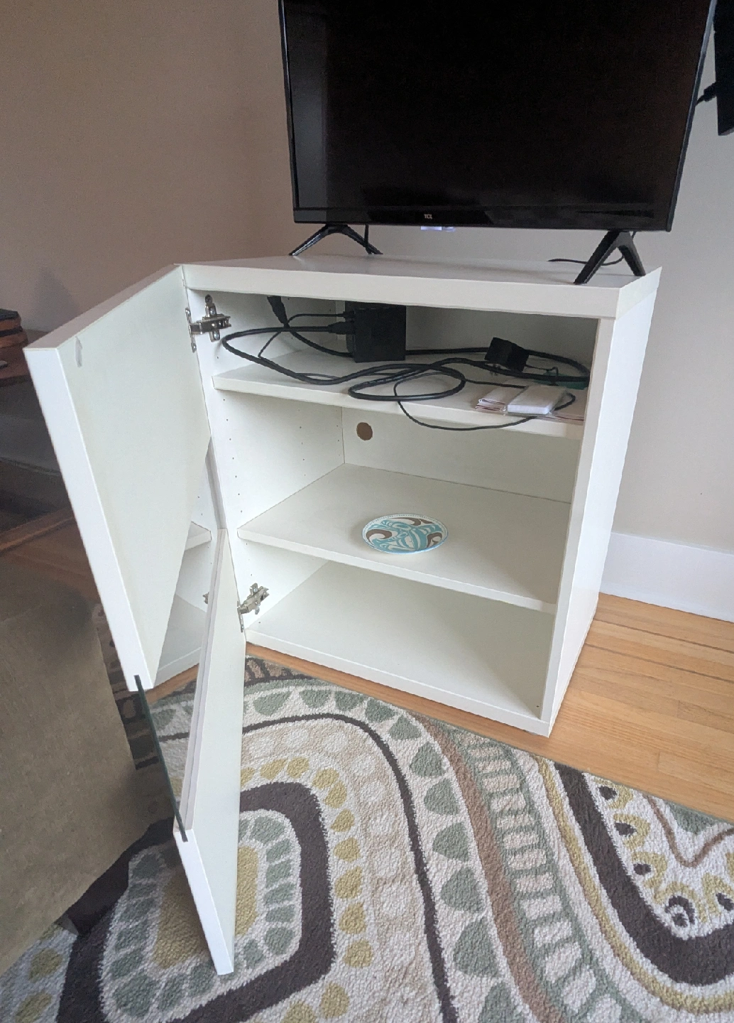 Here's a handy white TV stand, perfect for tidying up your entertainment area!