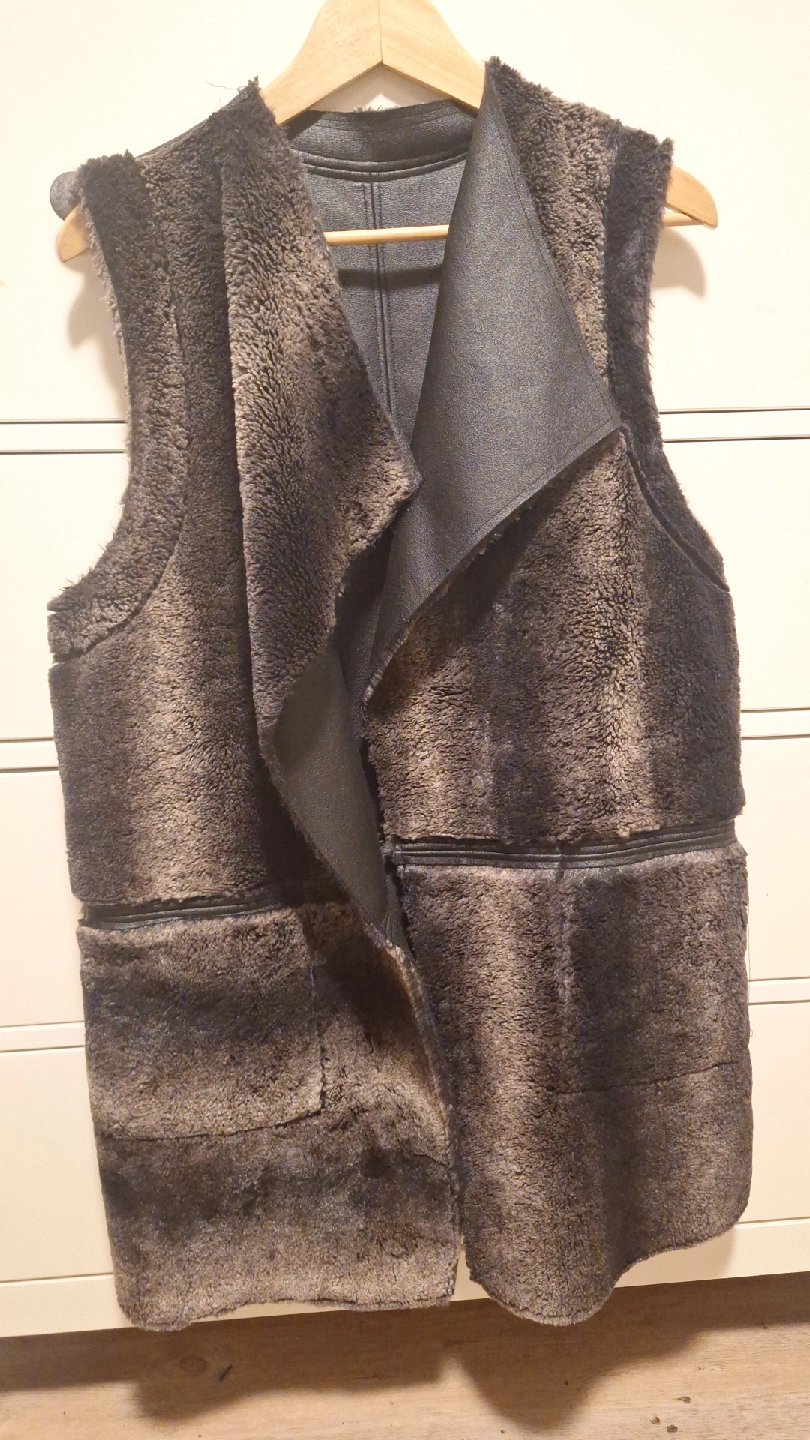 Selling a reversable faux fur vest in excellent condition! fits any size! mostly medium/large. Open-front reversable design faux leather. very warmth. (Laundry wash)