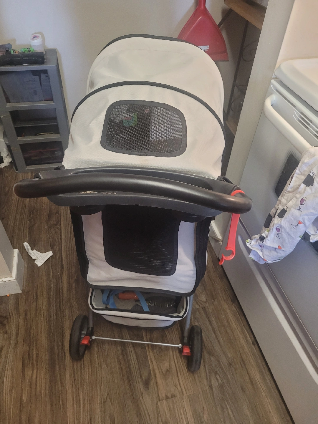 Looking to sell my pet stroller! It's perfect for small dogs or cats. It's in good condition and ready for a new home. It's great for walks around the neighbourhood or trips to the park. Your furry friend will love riding in style and comfort!