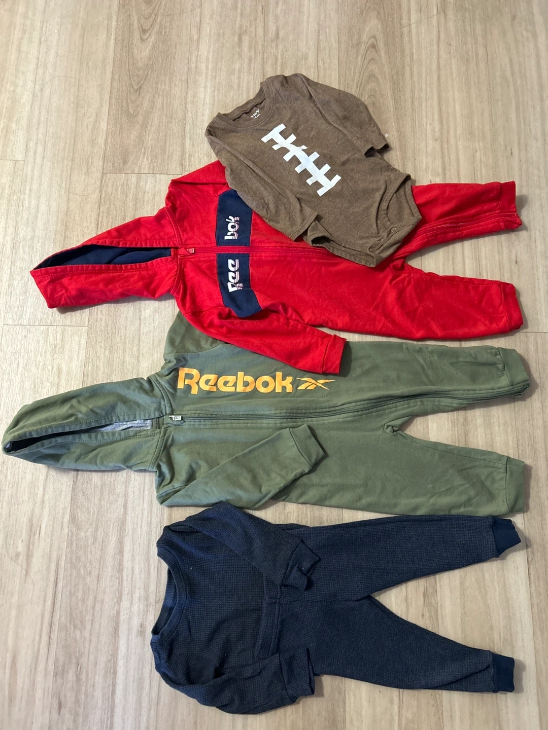 47Selling a bundle of baby clothes, including a Reebok onesie and a Carter's football-themed onesie! The bundle also includes a red zip-up and a navy blue thermal top