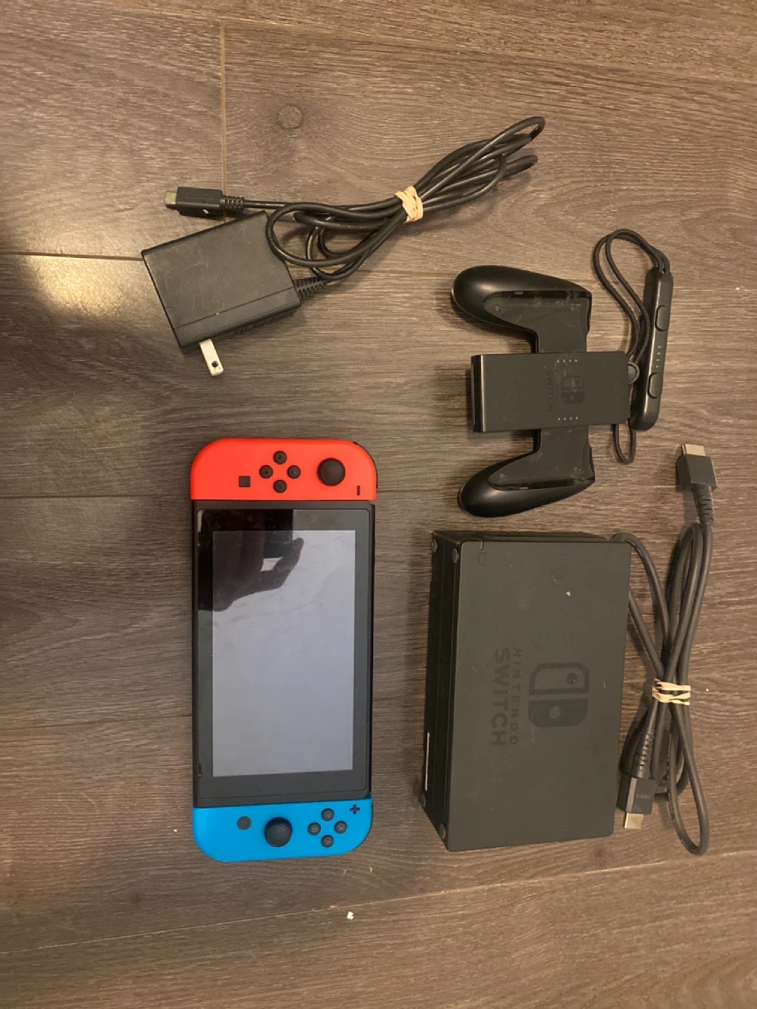 66Selling a used Nintendo Switch console. It comes with the dock, charger, and controller attachment as pictured. Great for gaming on the go or at home!