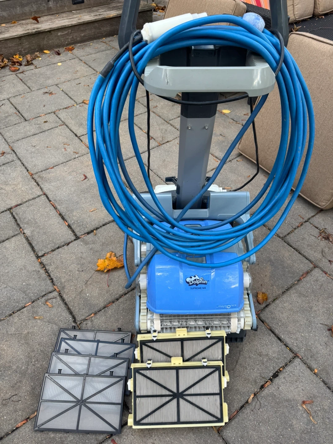 Selling a Dolphin Supreme M4 pool cleaner. It's in good condition and ready to keep your pool sparkling clean! It comes with the power supply and some extra filter cartridges.
