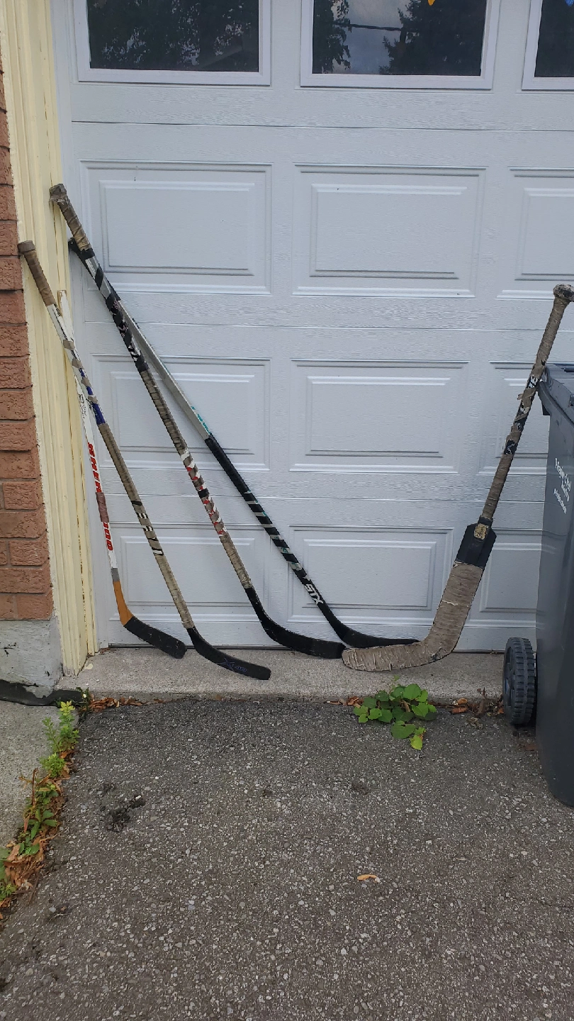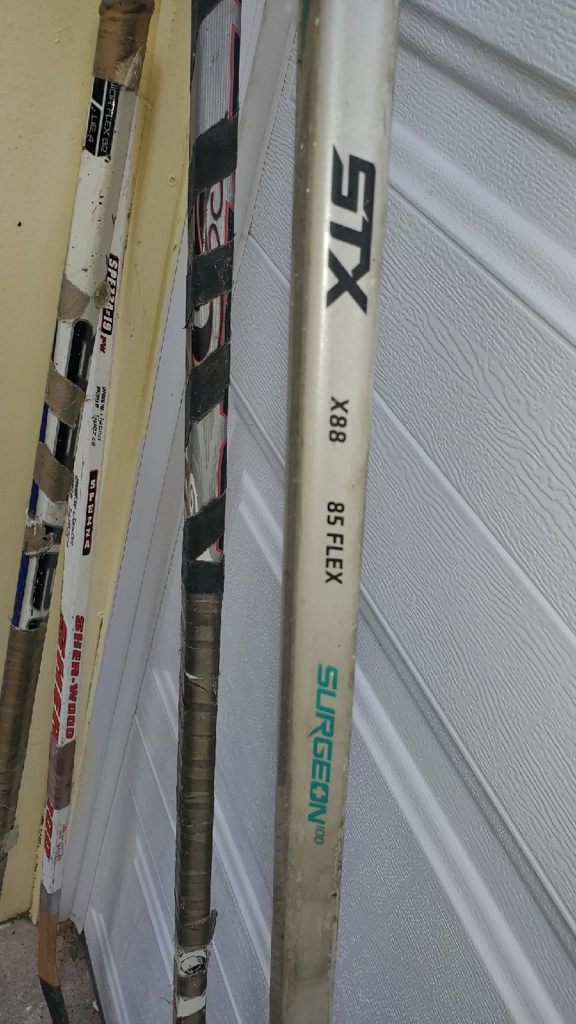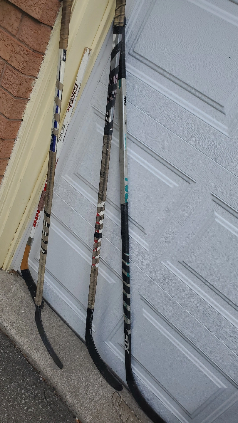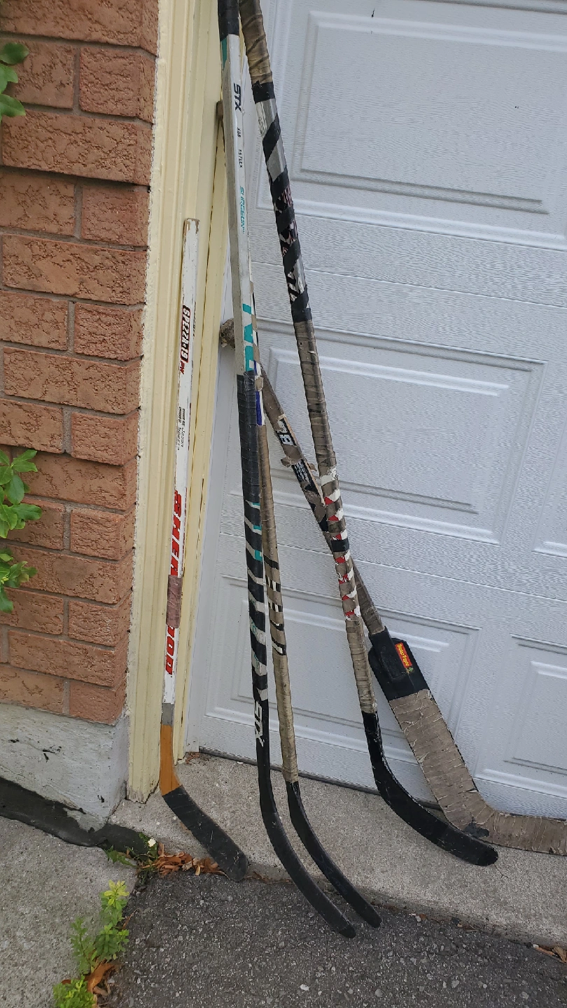 Selling a few used hockey sticks. There's an STX X88 85 Flex Surgeon, a Sherwood Speedp49 PM, and a Steven Payne stick. They've all been used, but still have some life left in them! Used but in great shape. Fun for ball hockey or game with family and friends. Includes a Goalie stick and four regular hockey sticks. $30 or best offer.