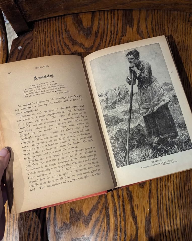 By T.L. Haines and L.W. Yaggy — Star Publishing Co., Chicago, c.1890s. Bound in red cloth with ornate black flourishes and gilt title lettering, this beautiful and well preserved Victorian volume offers classic 19th-century reflections on morality, perseverance, and success. It features dozens of gorgeous engraved illustrations that beautifully capture the tone of the era. Condition: