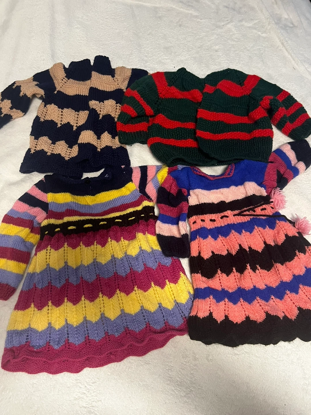 67Selling a collection of hand-knitted baby sweaters and dresses! They come in various colours and unique patterns. Perfect for keeping your little one warm and stylish. Made with love and care!