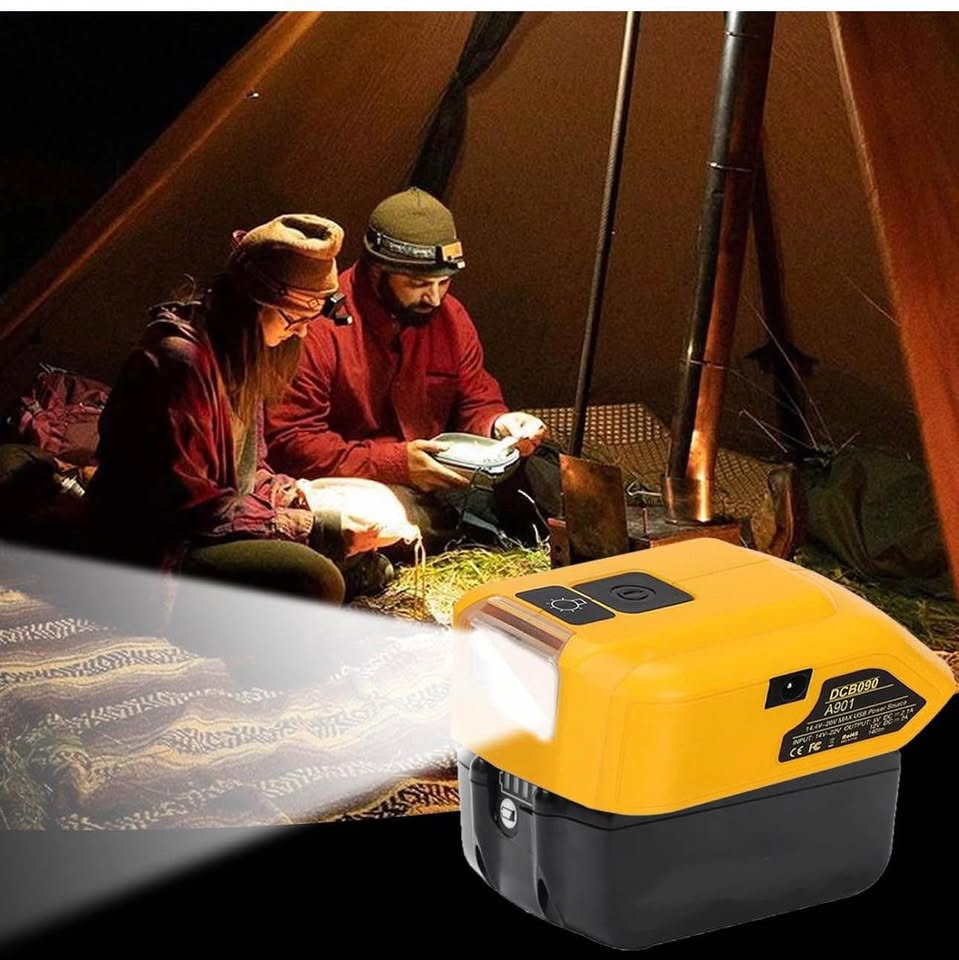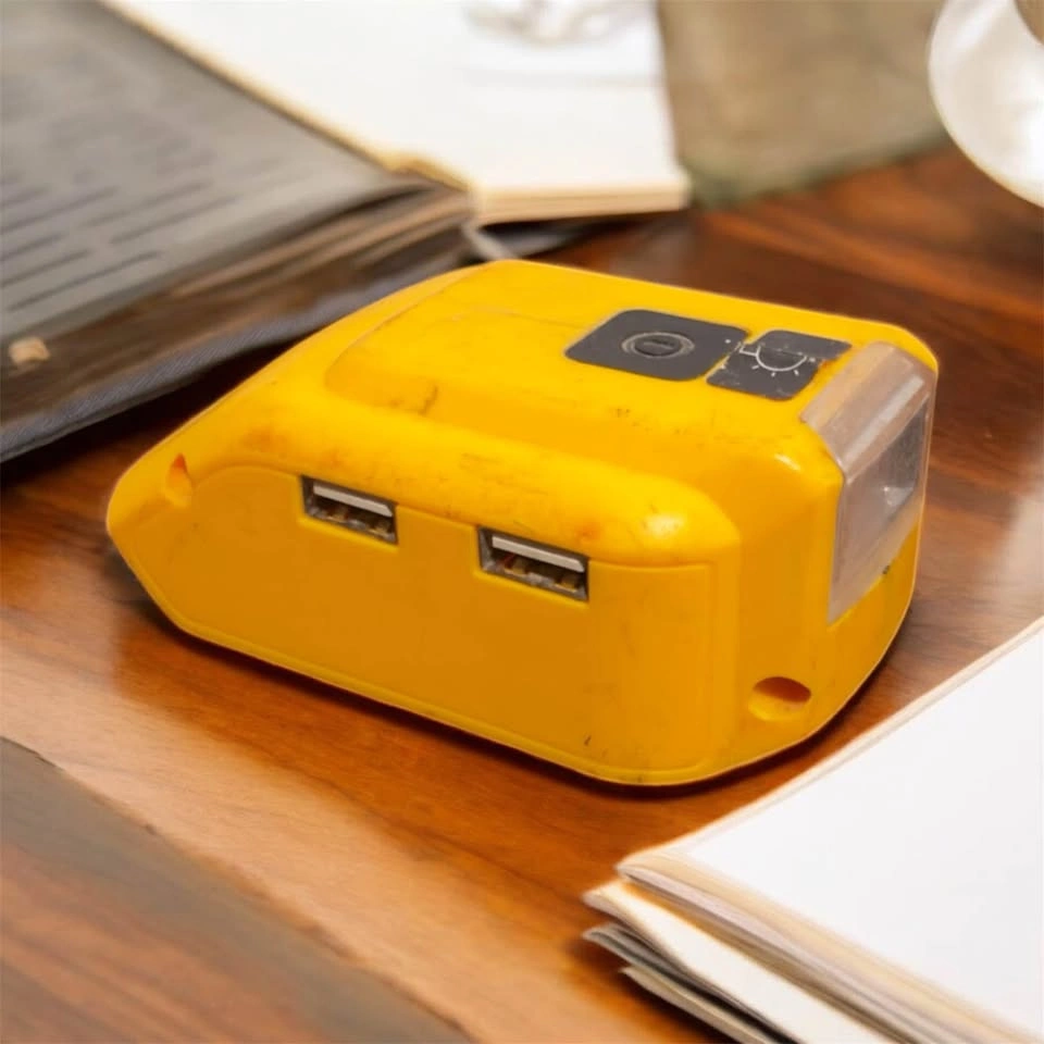 Power Tool Battery Converters feature a controllable LED bulb-shaped controller, experience illumination with brightness reaching 140lm. By utilizing the DC port for 12V/2A output and two USB ports for 5V/2.1A charging, you can power multiple devices quickly and efficiently. Crafted from high-quality, fireproof components, this converter ensures secure and optimal performance for seamless usage. Very portable and easy to carry, this battery converter ensures you can conveniently use it at any time for a dependable power source. Stay charged during your camping and night walking excursions with these high-performance power tool battery converters, ensuring continuous power for all your devices.