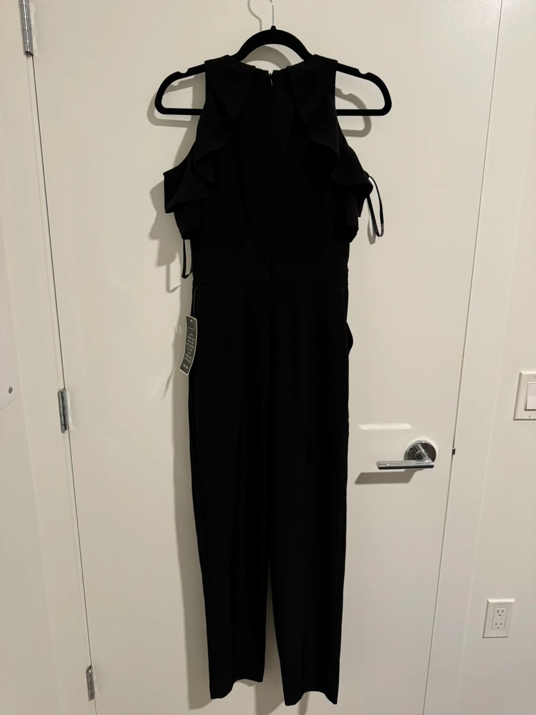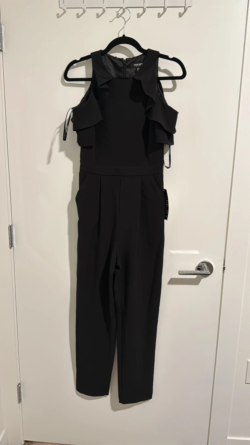This is a beautiful black jumpsuit from Ever New! It's a size 4. Perfect for a night out or a special occasion