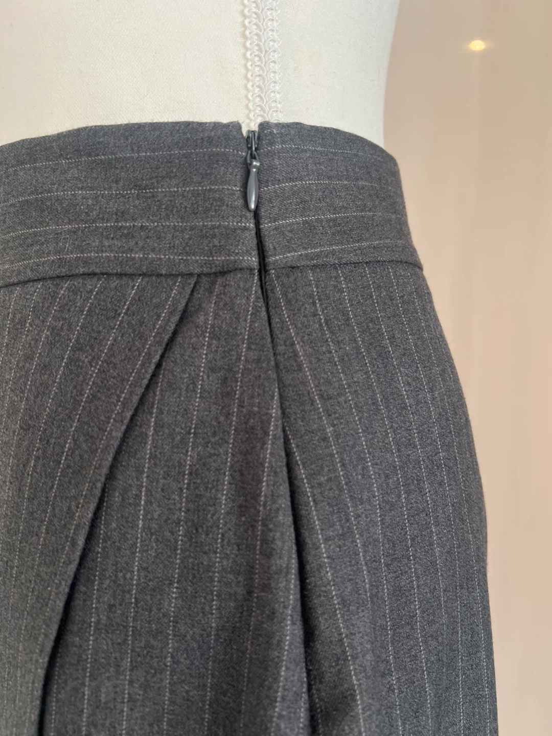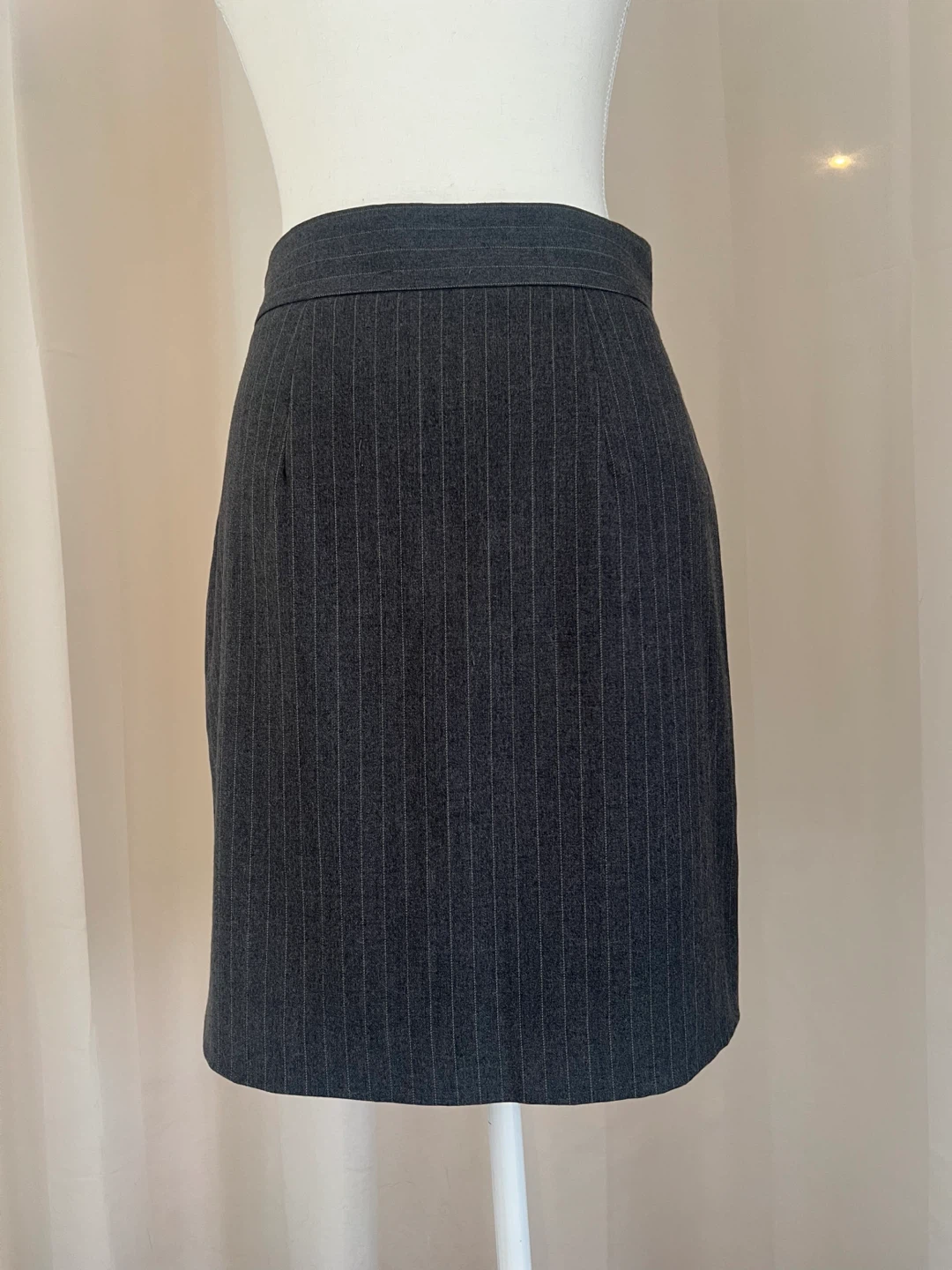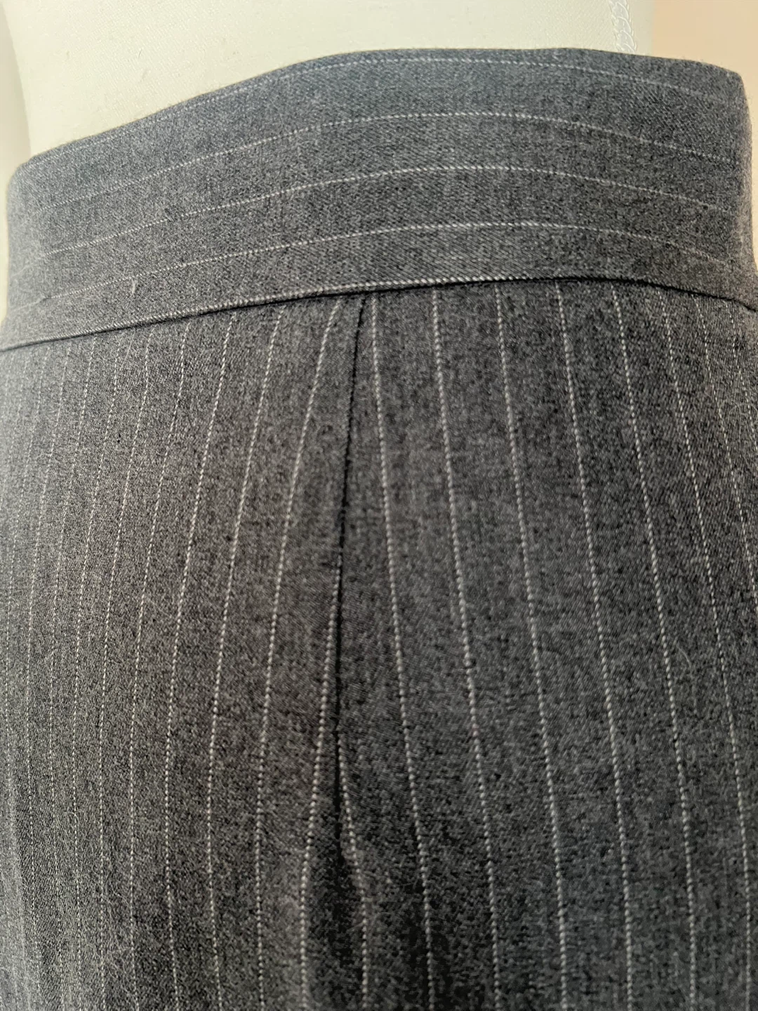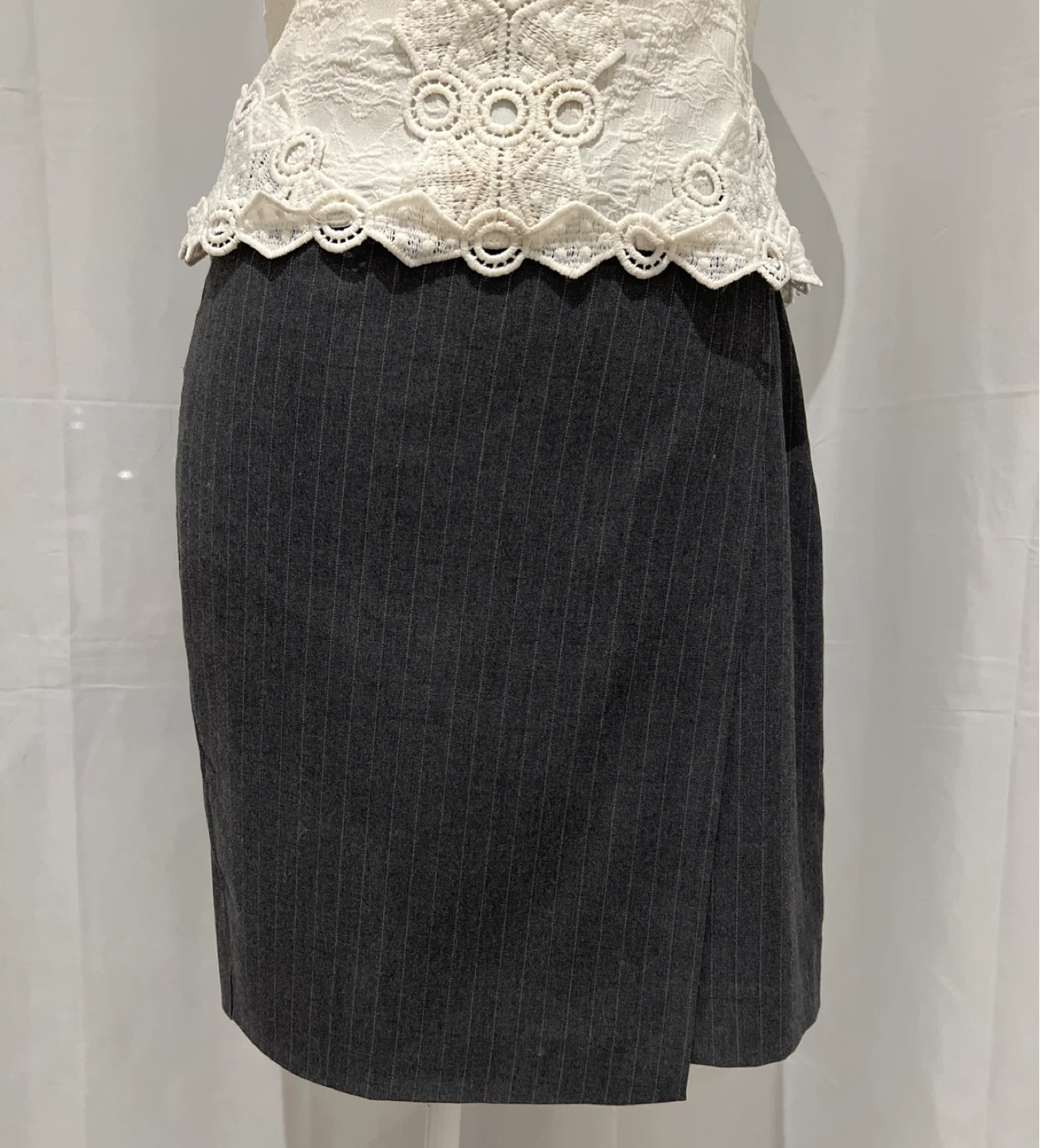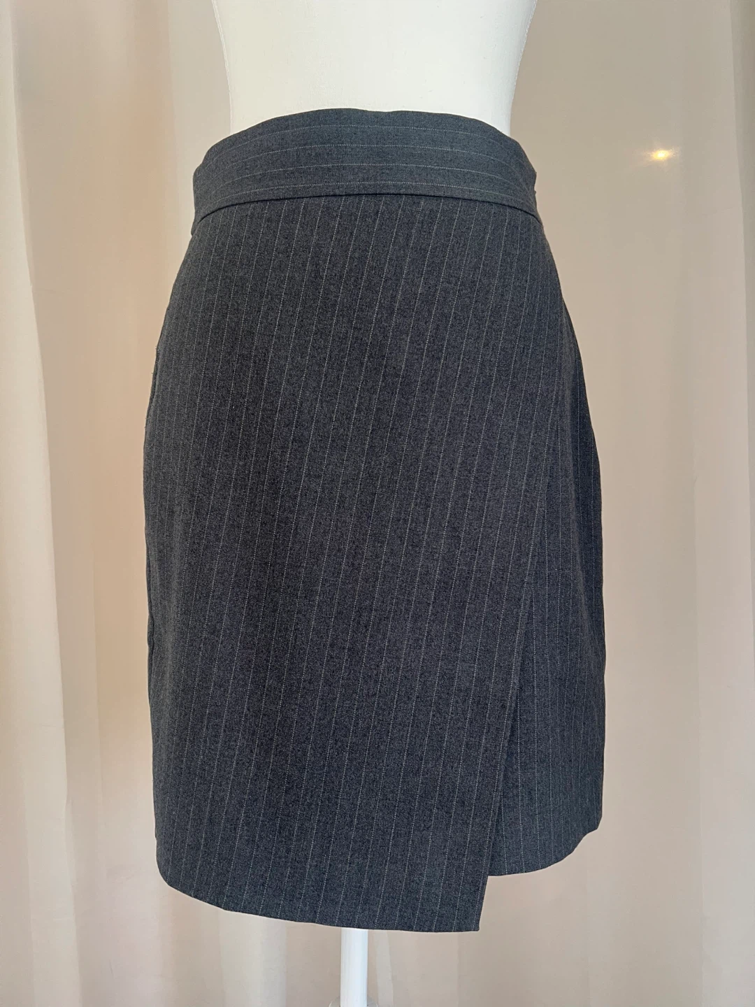 Here's a stylish pinstripe wrap skirt in a versatile grey colour! It's perfect for adding a touch of sophistication to your wardrobe. The wrap design is both flattering and on-trend, making it a great addition to any outfit.