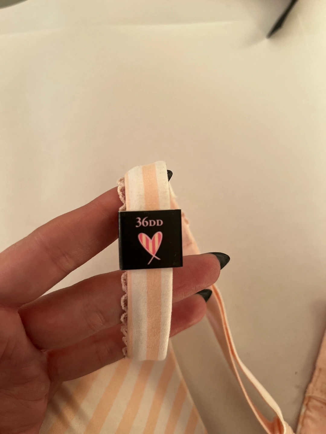 Selling a New Victoria's Secret bra in size 36DD. It features a cute striped pattern. Perfect for everyday wear!