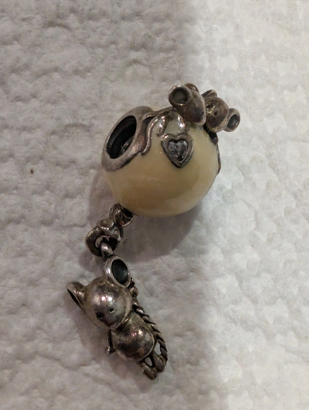 Selling a cute Pandora dangle charm marked with S925 ALE, indicating it's made of sterling silver. It features a unique design with little mice and balloon