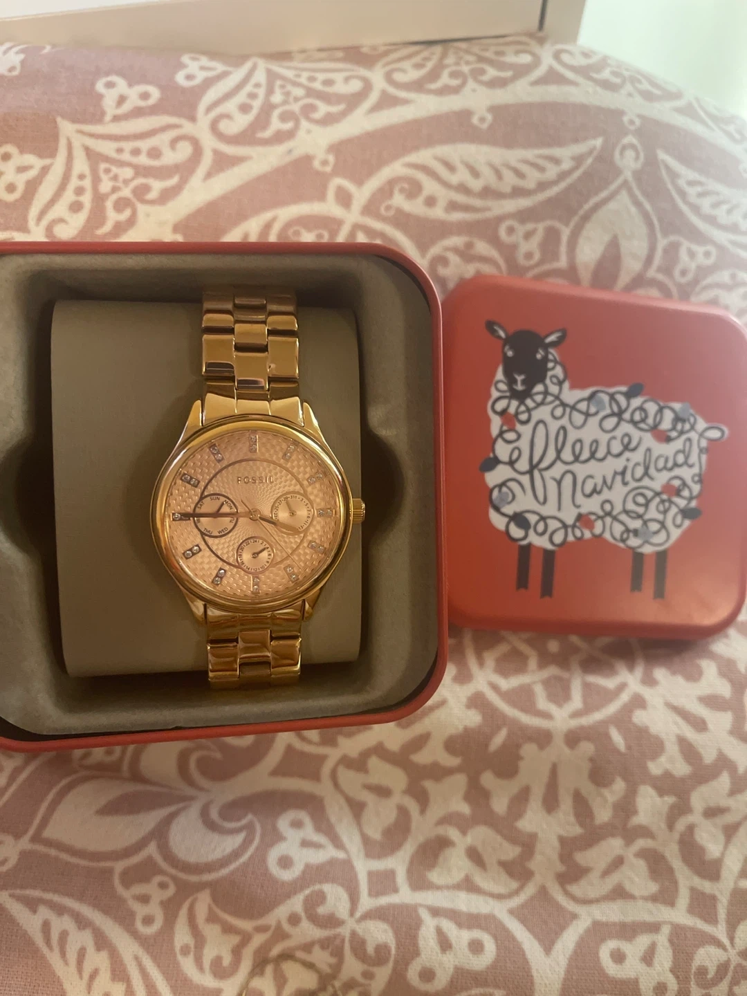 Selling a Fossil rose gold-tone stainless steel watch, model BQ1561! It's in great condition and comes with the original box. The watch has a sophisticated multifunction design. Originally bought for $134.47